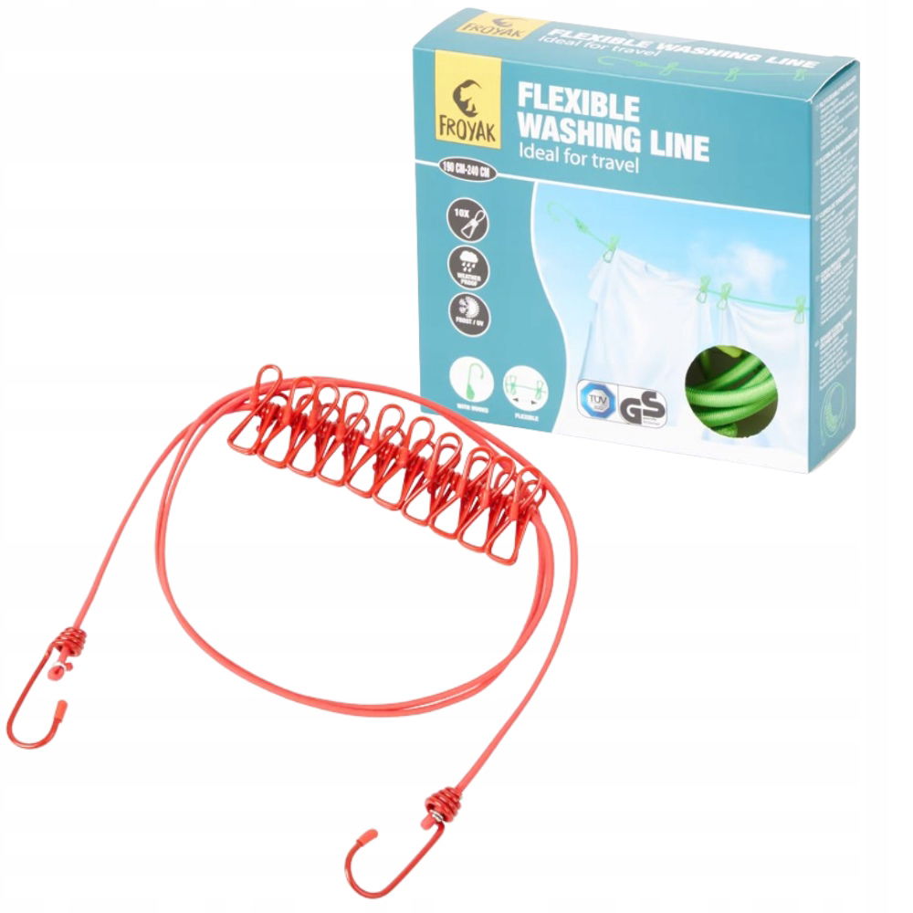 LINKA DO PRANIA ELASTYCZNA WODOODPORNA HAKI CAMPING FROYAK 190-240 CM RED