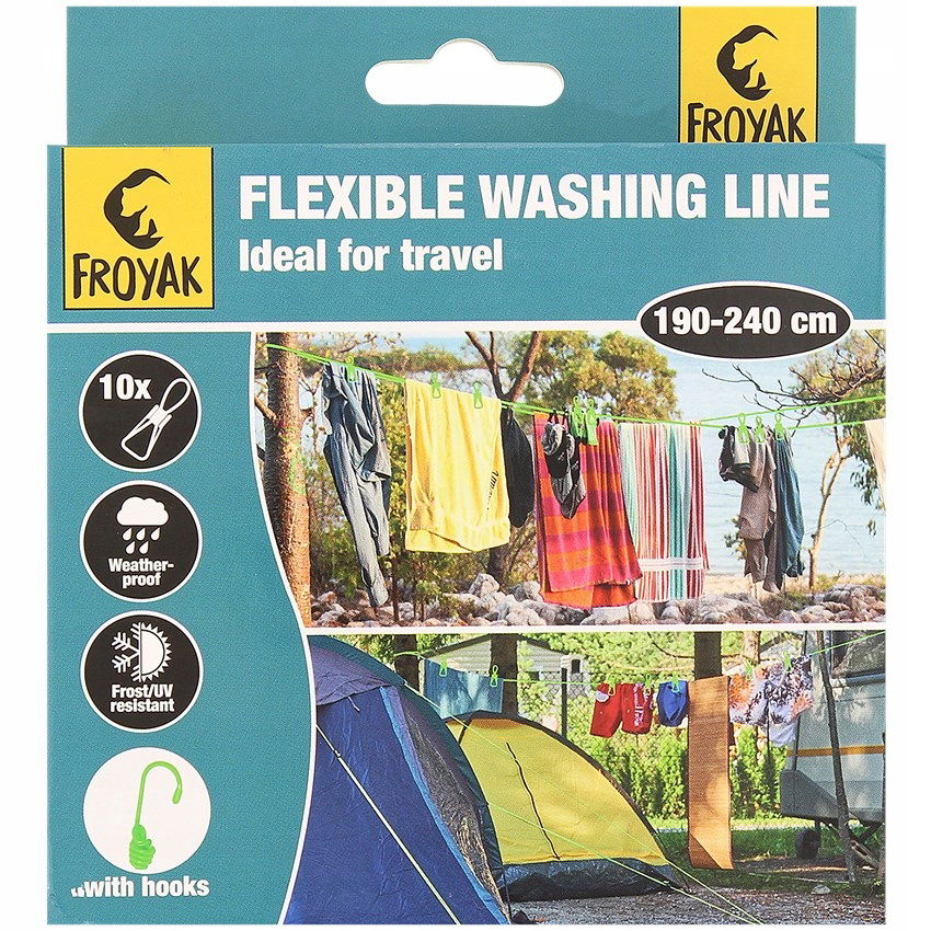 LINKA DO PRANIA ELASTYCZNA WODOODPORNA HAKI CAMPING FROYAK 190-240 CM ŻÓŁTA
