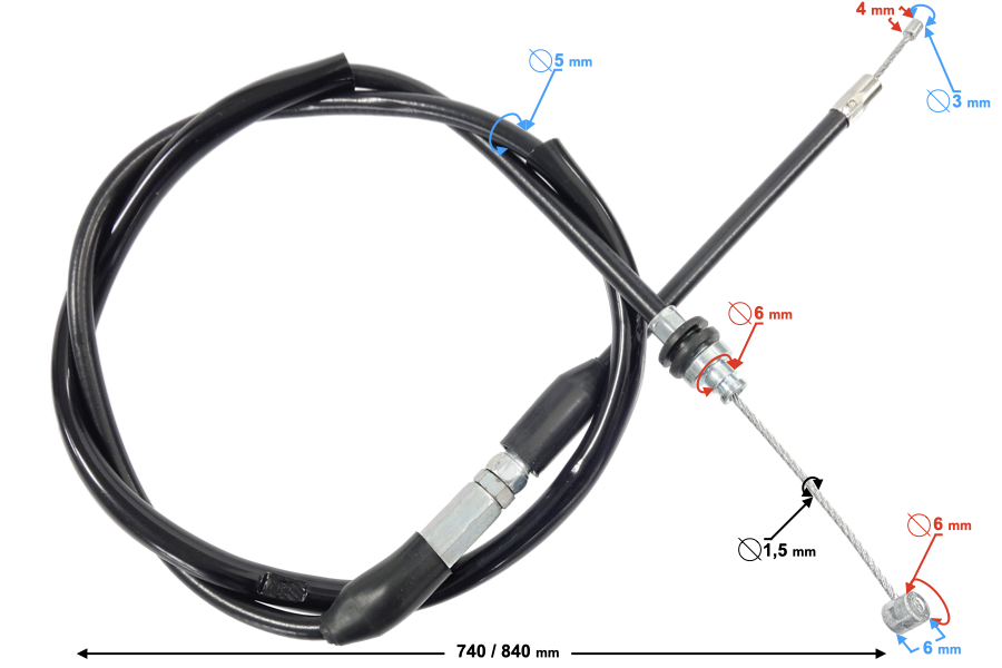 - długość pancerza linki: 740 mm
