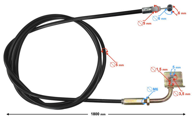 - długość całkowita linki: 1800 mm