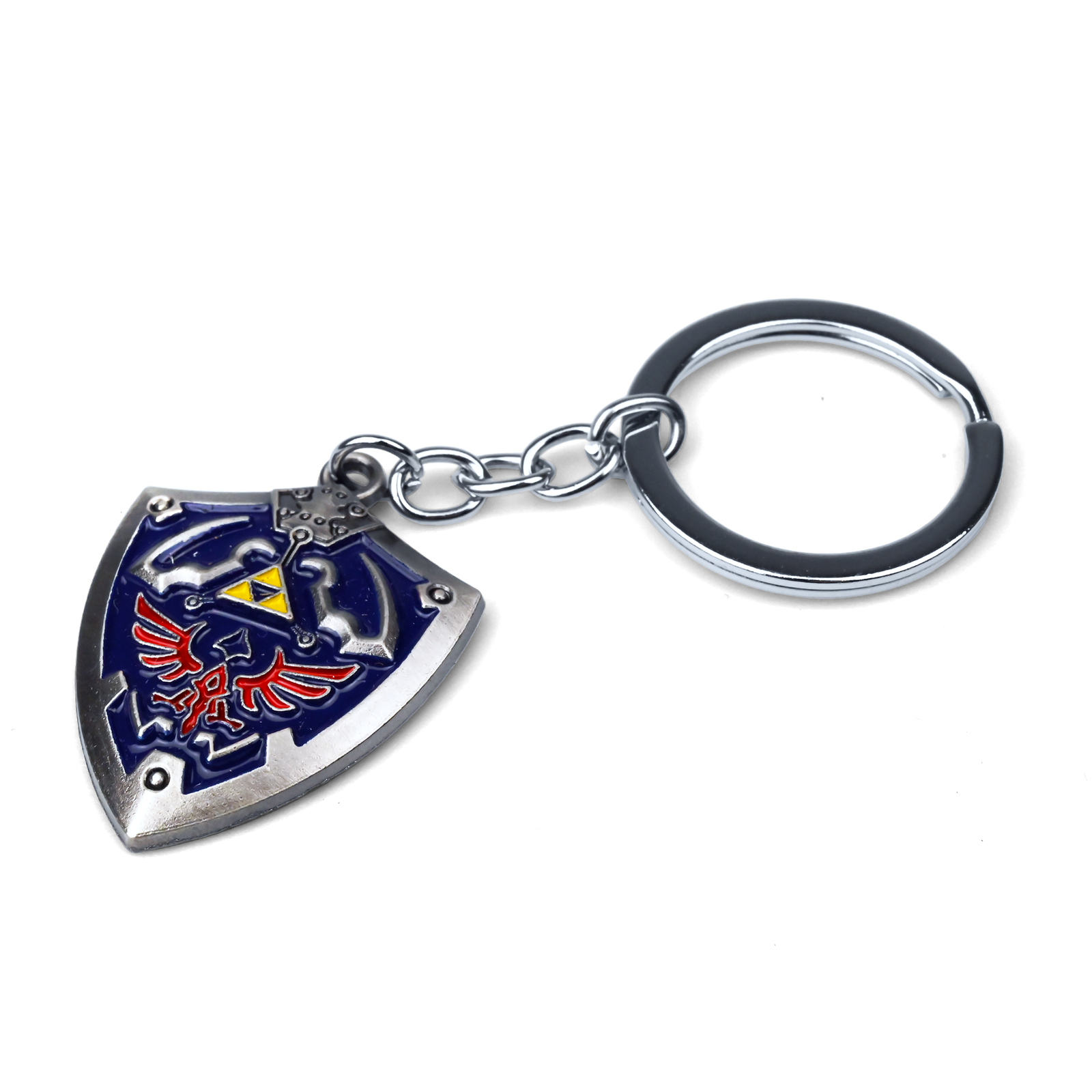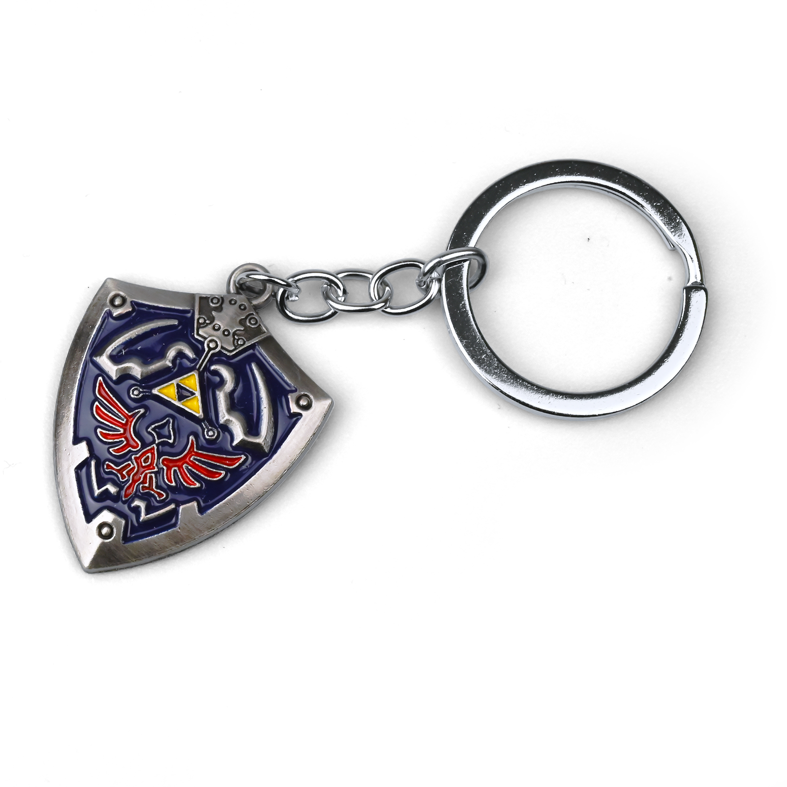Przenieś się do legendarnego świata Zelda z Repliką Breloka Tarczy Linka, wyjątkowym gadżetem dla wszystkich fanów Zelda. O długości 100 mm i wykonany z wytrzymałego stopu metalu, ten brelok odwzorowuje kultowy wygląd tarczy Hylian, z dbałością o detale i żywe kolory. Tarcza zachwyca intensywnym niebieskim tłem, czerwonym herbem Hylian oraz złotym symbolem Triforce w centrum, symbolizującym odwagę, mądrość i siłę. Polerowane metalowe wykończenie zapewnia trwałość i autentyczny wygląd, dzięki czemu brelok sprawdza się zarówno jako funkcjonalny dodatek, jak i element dekoracyjny. Przymocuj go do kluczy, plecaka lub kolekcji, aby podkreślić swoje zamiłowanie do przygód Linka i świata Zelda. To idealny prezent dla fanów Zelda i kolekcjonerów pamiątek z gier wideo. Replika Breloka Tarczy Linka łączy w sobie styl, nostalgię i precyzję wykonania, będąc ponadczasowym dodatkiem do każdej kolekcji Zelda.