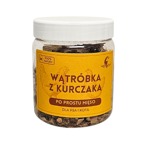 Mięsna przekąska dla psów i kotów w każdym wieku. 100% mięsa, bez zbóż i bez konserwantów. Wątróbka z kurczaka to naturalna bomba witaminowa. Jest bogata w witaminy A i B, cynk, żelazo oraz zdrowe kwasy tłuszczowe. Poprawia widzenie i zapobiega anemii u psa i kota.
