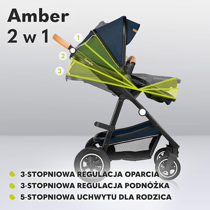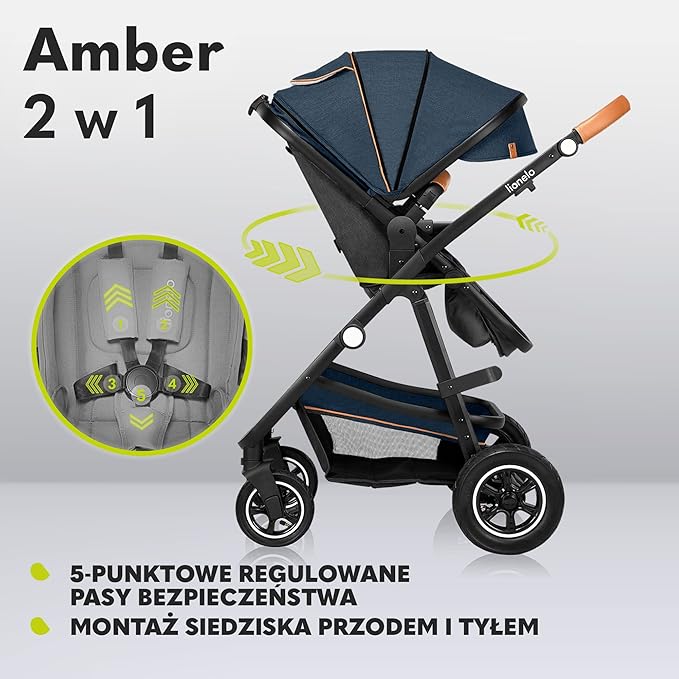 LIONELO AMBER WÓZEK GŁĘBOKO-SPACEROWY 2W1 BLUE NAVY