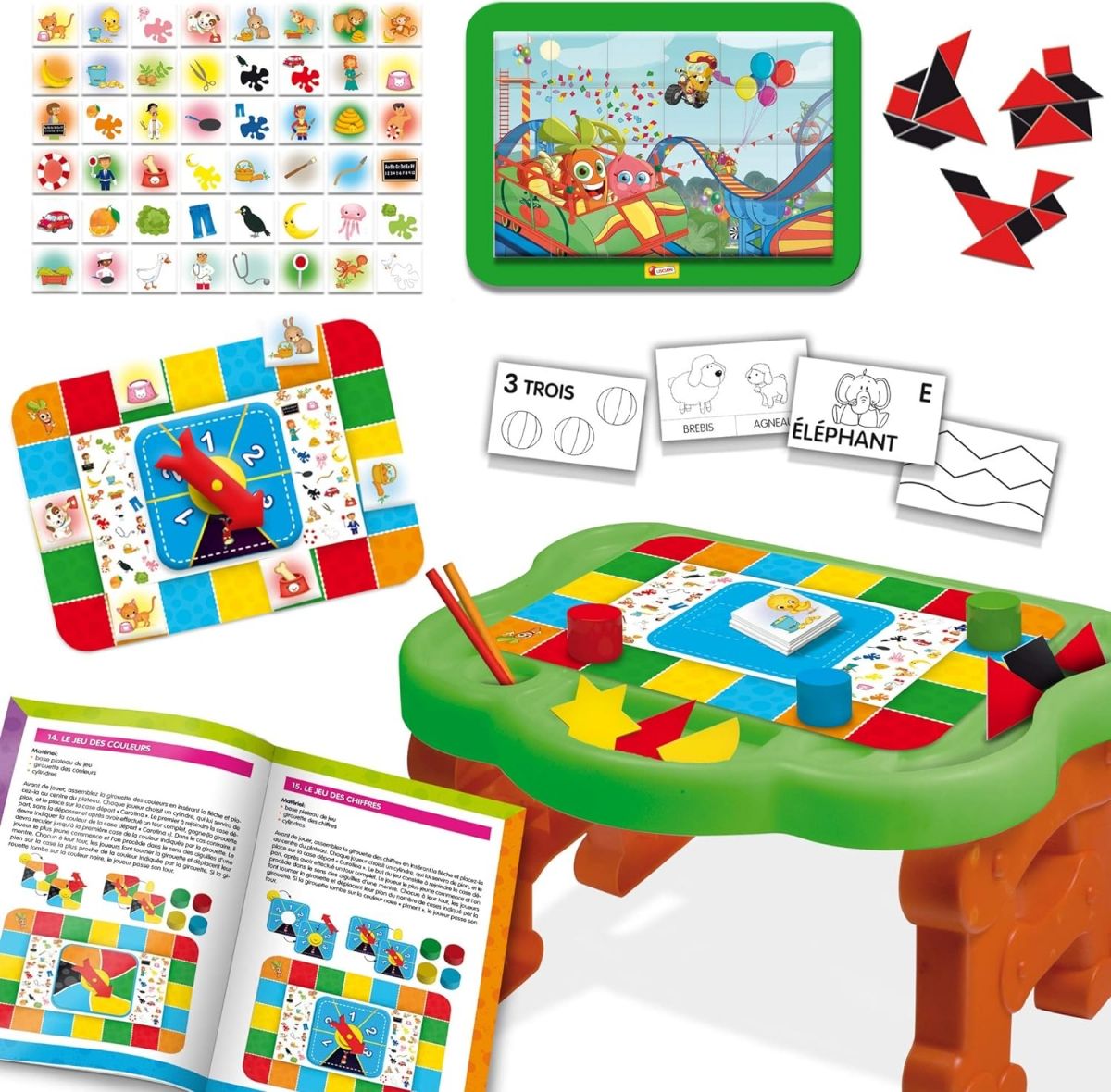 - Gra zawiera również podręczny ilustrowany przewodnik dla rodziców, który opisuje wszystkie gry i zajęcia, w tym tangram, gry pamięciowe, puzzle i inne