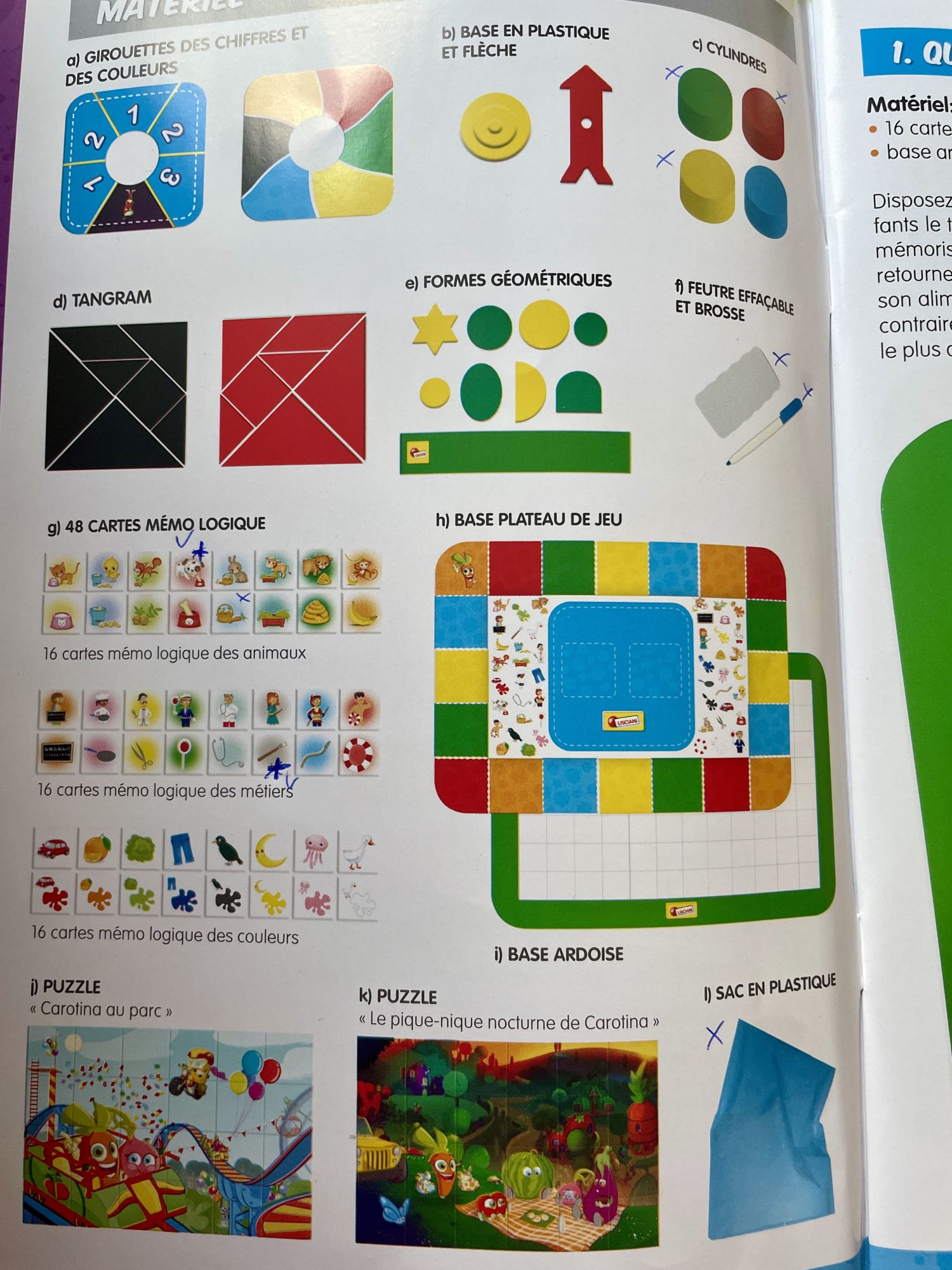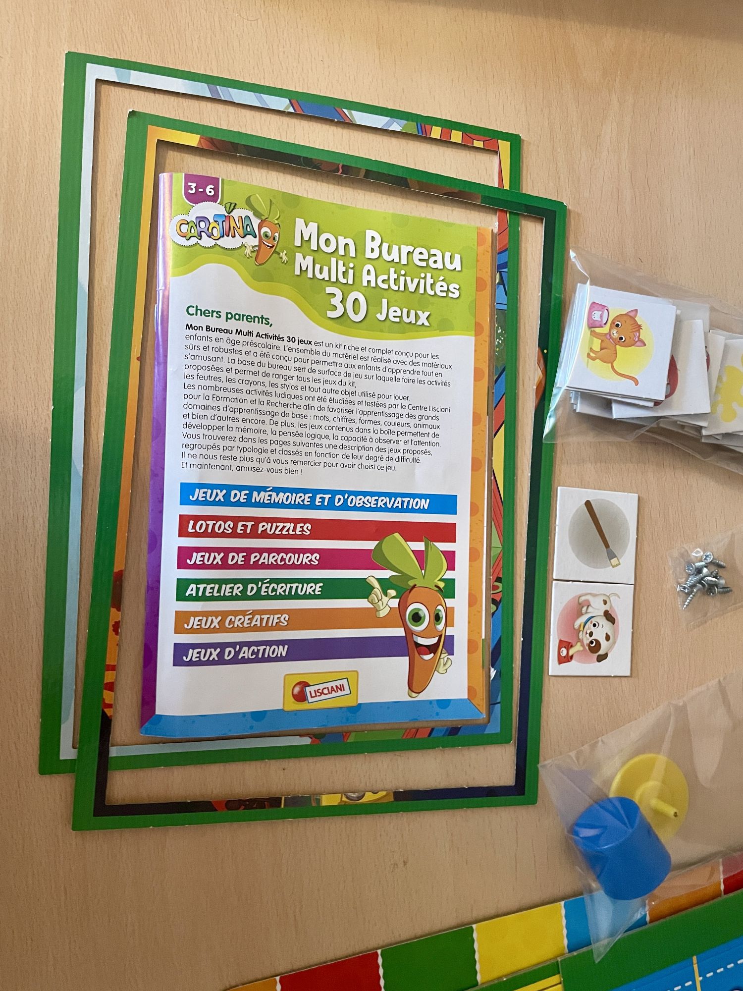 - Instrukcja montażu, książeczka z propozycjami zabaw (w języku francuskim - przykładowe foto załączone)