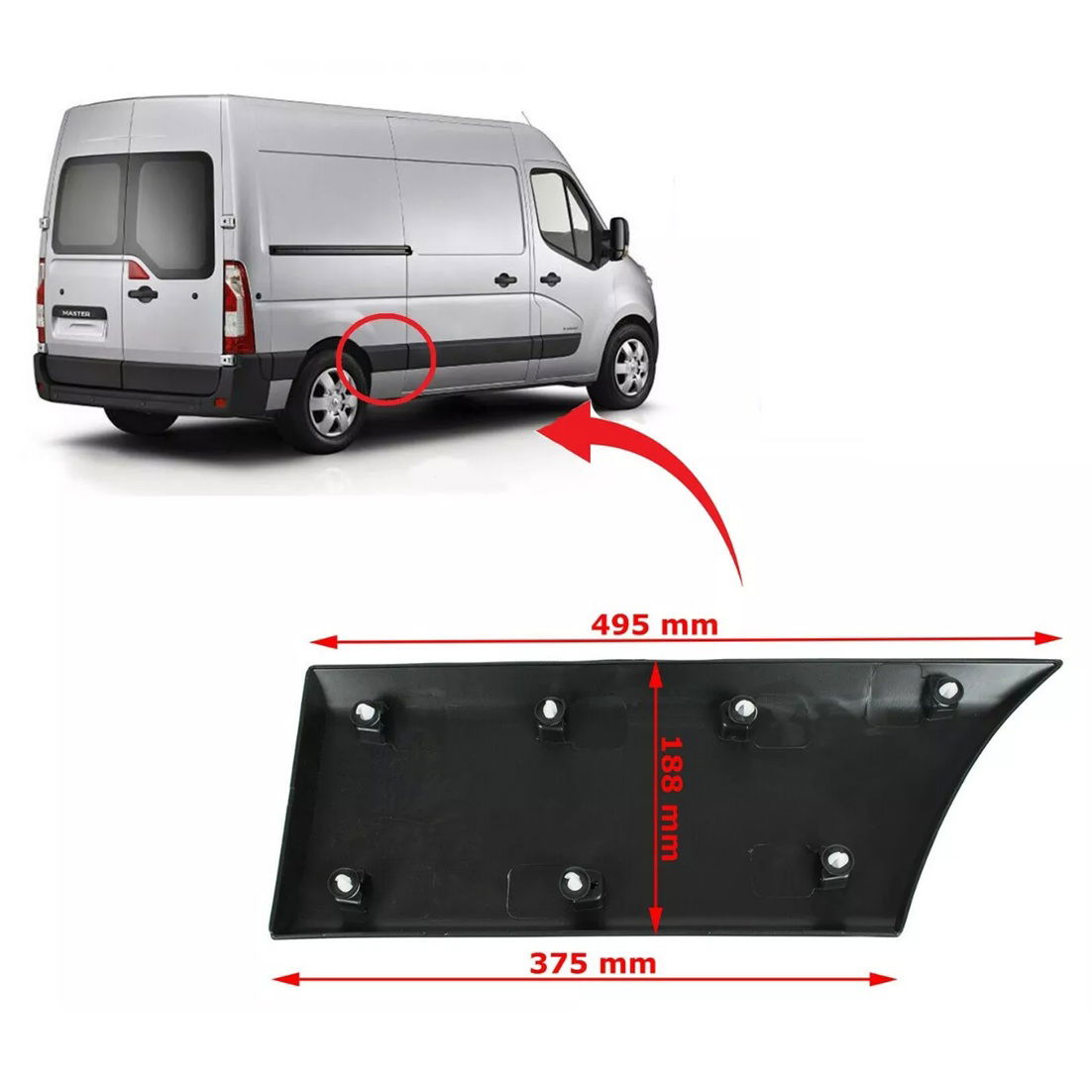 Nowa, wysokiej jakości listwę błotnika tylnego prawego przeznaczoną do samochodów dostawczych Renault Master III, Opel Movano B oraz Nissan NV400 produkowanych w latach 2010–2023.