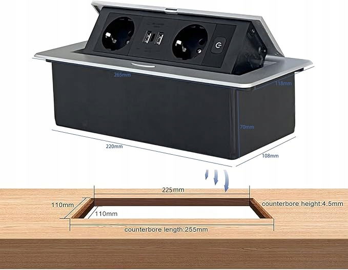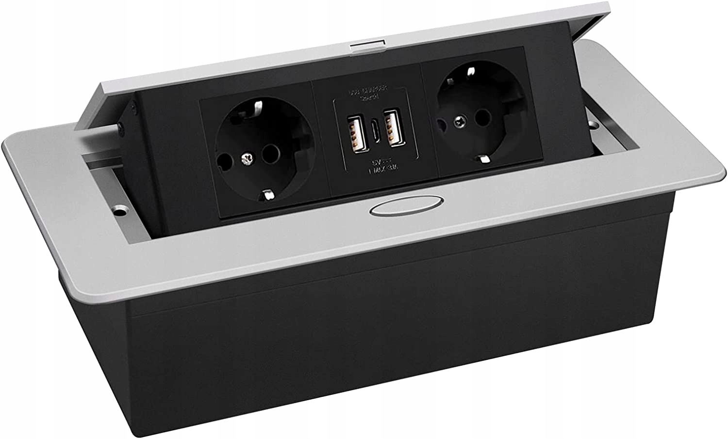 GNIAZDO WPUSZCZANE W BLAT LISTWA ZASILAJĄCA SREBRNA USB