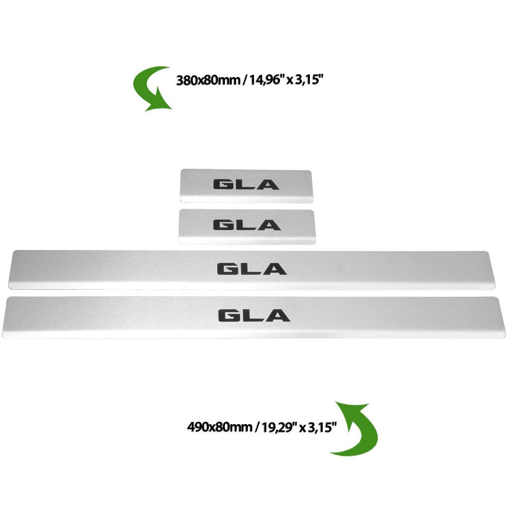 MERCEDES GLA X156 Nakładki progowe ze stali nierdzewnej 304, czarne, matowe napisy
