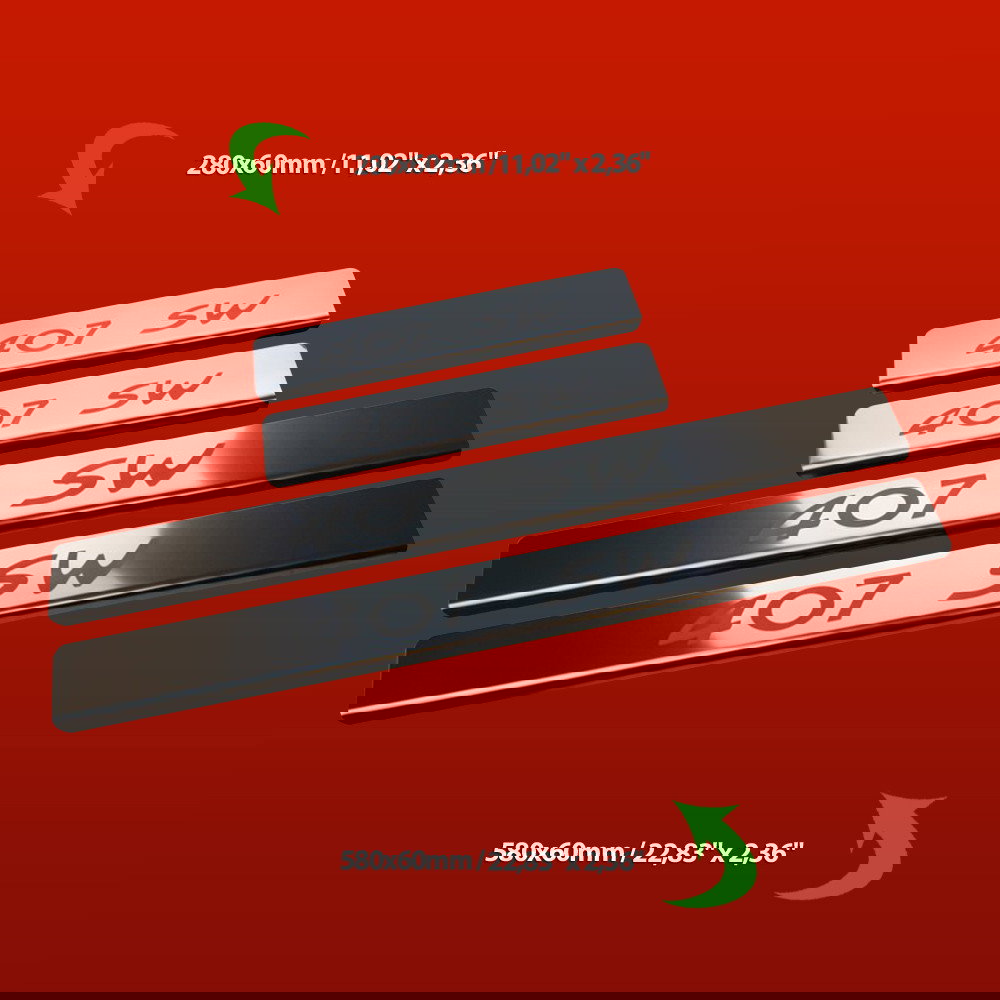 Łatwa instalacja: Montaż naszych nakładek na progi drzwi PEUGEOT 407 407 SW jest dziecinnie prosty. Są one dostarczane z wstępnie nałożoną taśmą samoprzylepną, dzięki czemu proces instalacji jest szybki i bezproblemowy. Nie są wymagane żadne specjalne narzędzia ani umiejętności. Nie musisz być ekspertem od majsterkowania :) Nasz produkt został zaprojektowany z myślą o prostej instalacji.
