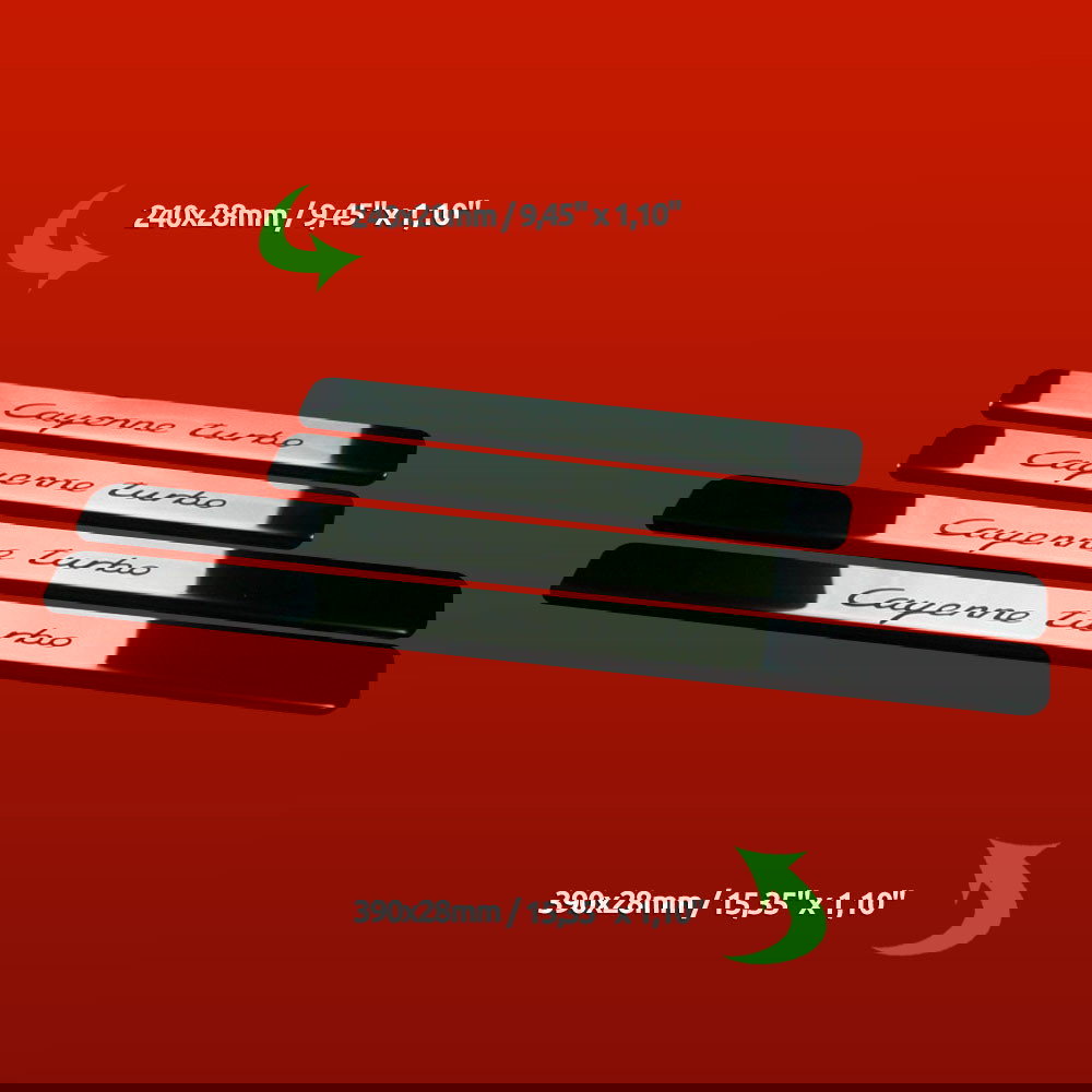 Odmień wnętrze swojego samochodu dzięki odrobinie luksusu i ochrony. Zamów nasze nakładki na progi drzwi PORSCHE CAYENNE 955 CAYENNE TURBO już dziś i podnieś swoje wrażenia z jazdy. Ulepsz swój PORSCHE CAYENNE 955 CAYENNE TURBO dzięki nakładkom na progi drzwi PORSCHE CAYENNE 955 CAYENNE TURBO ze Stal nierdzewna 304 połysk wykończeniem od Carmodstore.com. Te progi drzwi są nie tylko praktycznym dodatkiem, ale także wyrazem stylu i jakości. Chroń swoją inwestycję, jednocześnie zwiększając jej atrakcyjność wizualną.