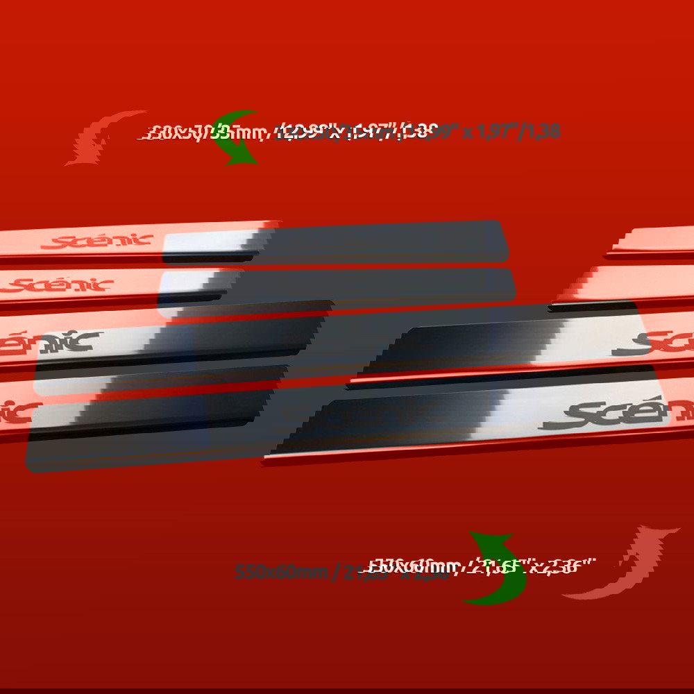Odmień wnętrze swojego samochodu dzięki odrobinie luksusu i ochrony. Zamów nasze nakładki na progi drzwi RENAULT SCENIC MK1 już dziś i podnieś swoje wrażenia z jazdy. Ulepsz swój RENAULT SCENIC MK1 dzięki nakładkom na progi drzwi RENAULT SCENIC MK1 ze Stal nierdzewna 304 połysk wykończeniem od Carmodstore.com. Te progi drzwi są nie tylko praktycznym dodatkiem, ale także wyrazem stylu i jakości. Chroń swoją inwestycję, jednocześnie zwiększając jej atrakcyjność wizualną.