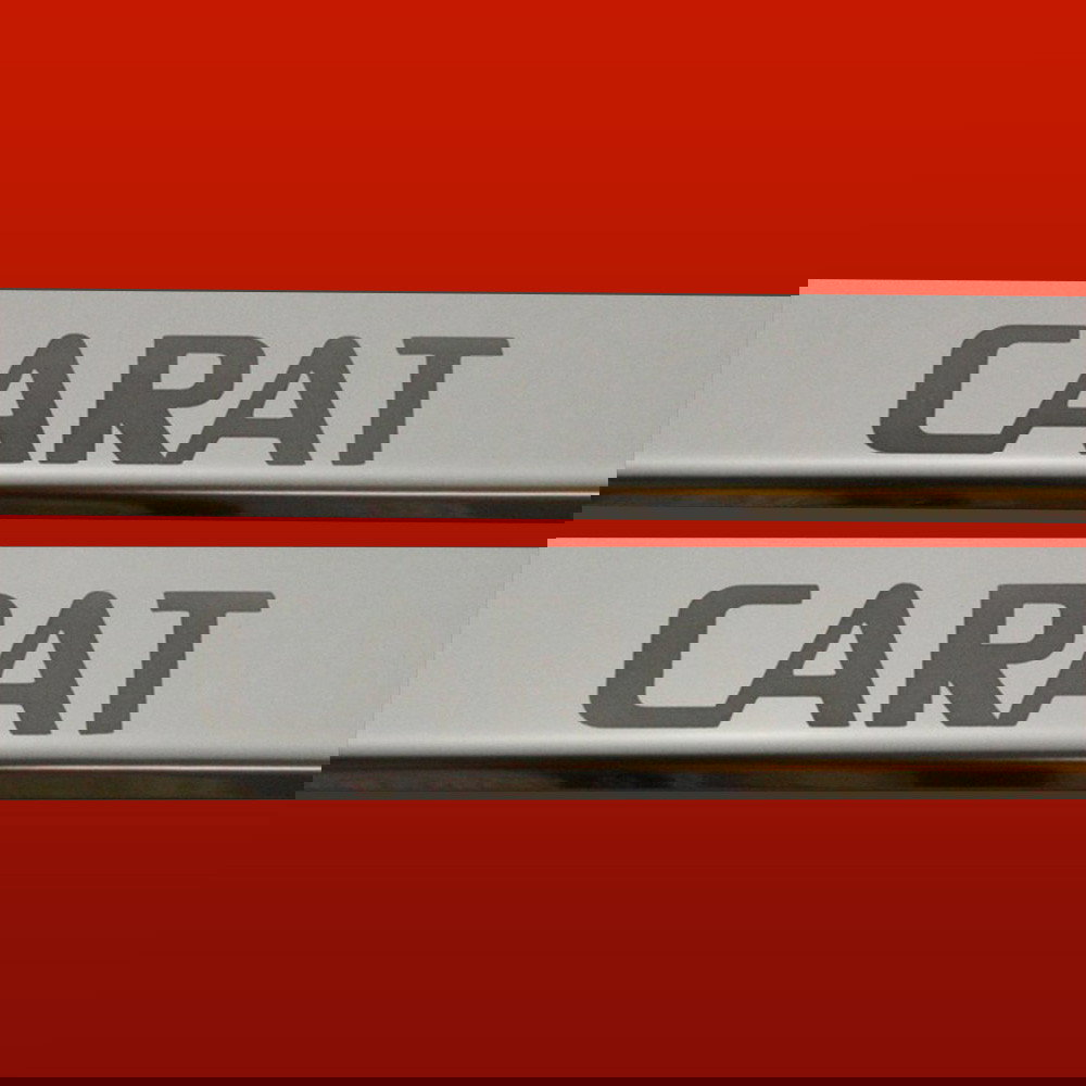 Najwyższa jakość: Nasze nakładki progów drzwi VOLKSWAGEN GOLF MK2 CARAT są wykonane z najwyższej jakości stali nierdzewnej 304, zapewniając wyjątkową trwałość i długowieczność. Lustrzane wykończenie nadaje im elegancki i wypolerowany wygląd.