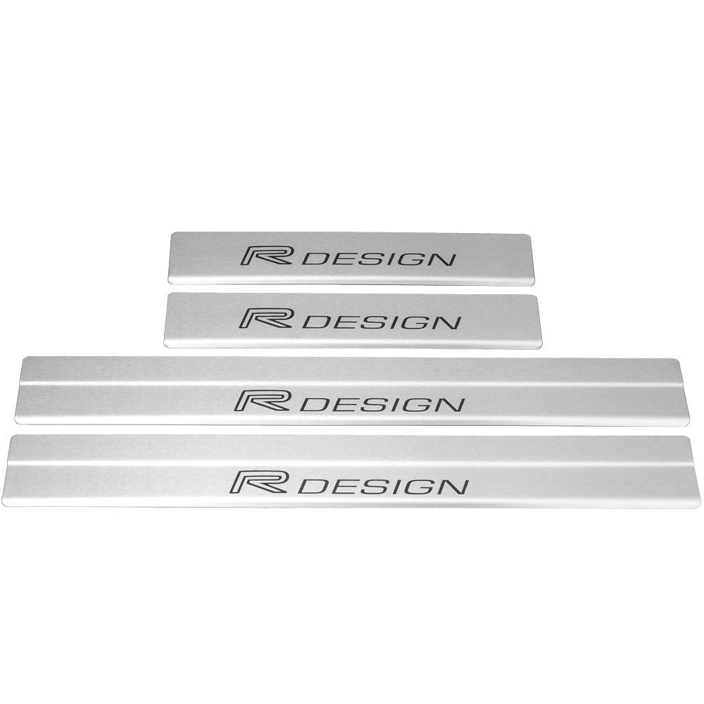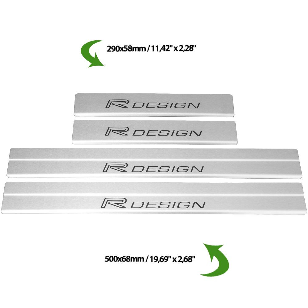 VOLVO V40 MK2 Nakładki progowe R DESIGN 304 ze stali nierdzewnej. Napisy w kolorze czarnym, matowym