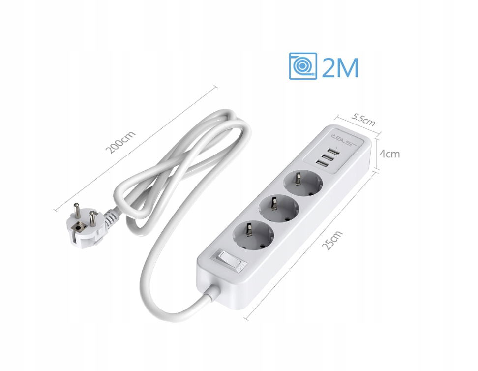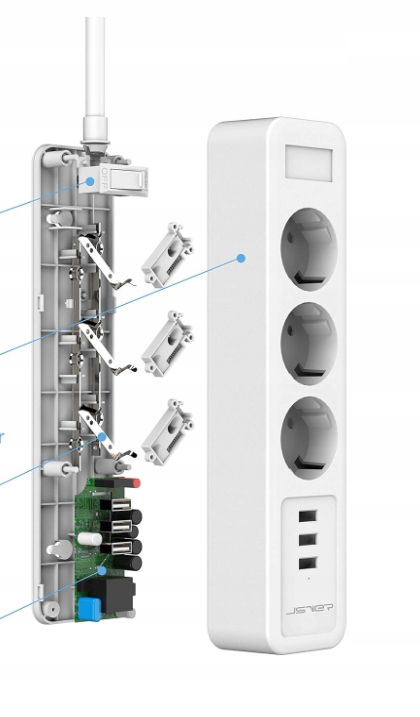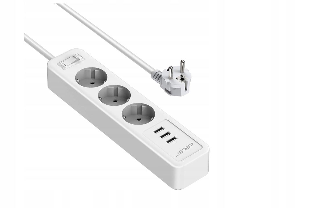 Listwa zasilająca JSVER gniazdka USB, zabezpieczeniem POWYSTAWOWY