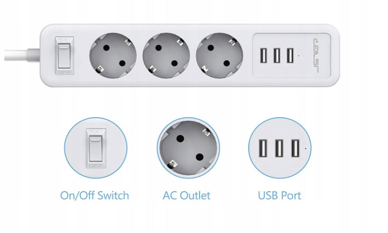 - ✴️ Pełna ochrona urządzeń-Zabezpieczenie przeciwprzepięciowe 300 J oraz ochrona przed przepięciem, przetężeniem, przeciążeniem, zwarciem i nieprawidłowym stykiem.
