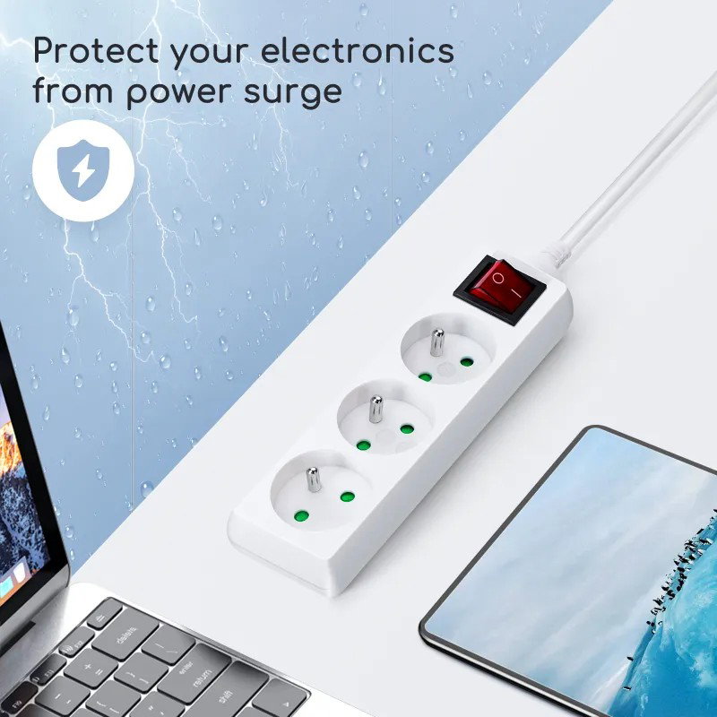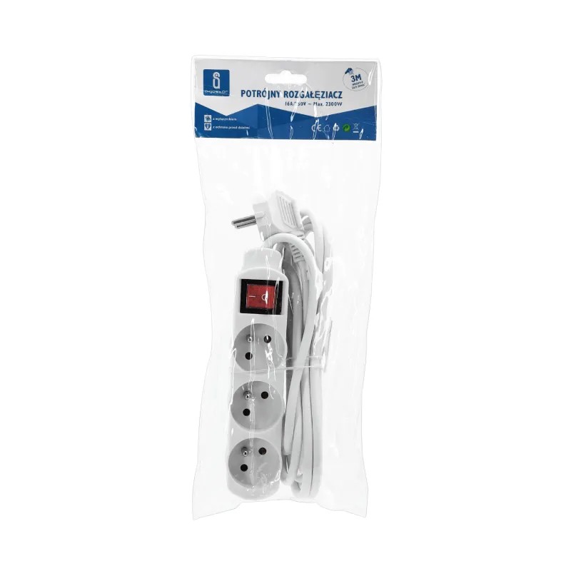 Listwa zasilająca na 3 gniazda typu francuskiego z przełącznikiem