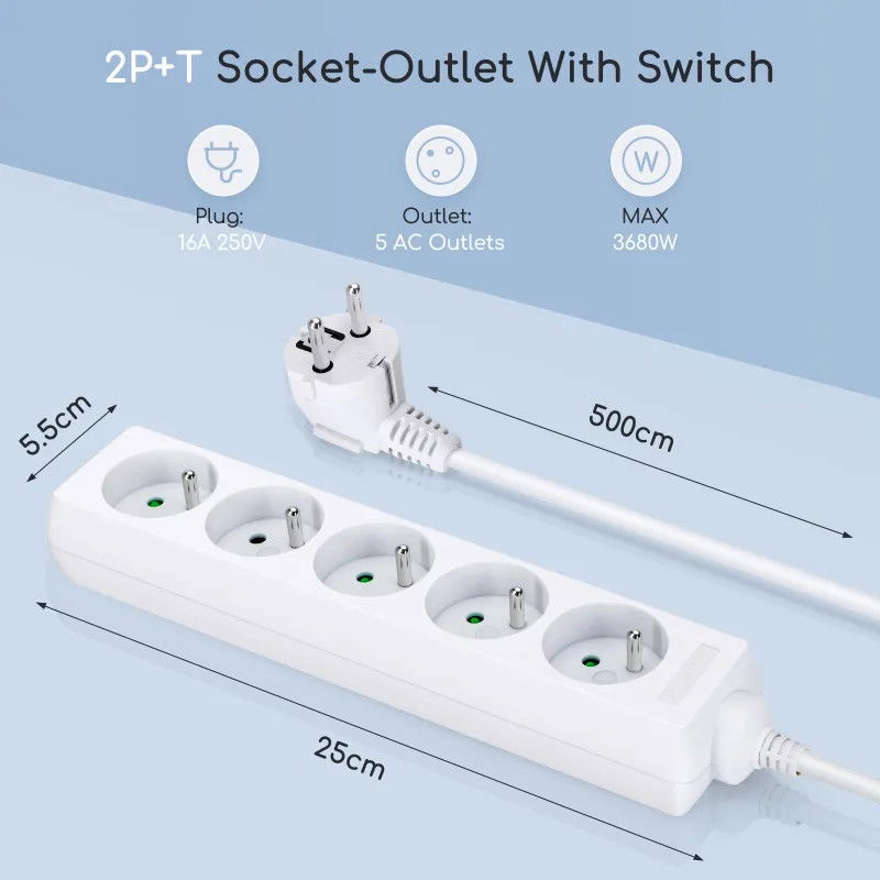 Parametry gniazda: 16A 250V~ 5-WAY 2P+E