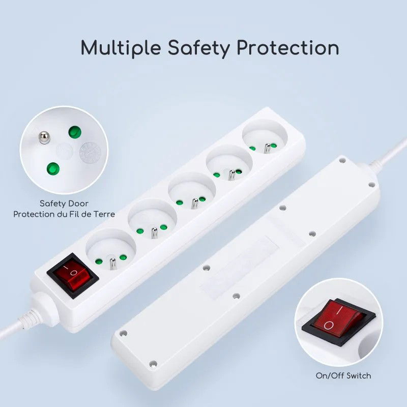 Przewód zasilający o standardzie europejskim. Chroń dzieci przed porażeniem prądem elektrycznym. Odporny na podłączanie i odłączanie. Zintegrowana wtyczka. Wysokiej jakości trójżyłowy kabel miedziany, minimum 32 na akcję, dobra liniowość, mały ciepła, aby sprostać długotrwałemu użytkowaniu przy pełnym obciążeniu. Każde gniazdo posiada niezależne wewnętrzne drzwiczki zabezpieczające, które mogą skutecznie zapobiegać wkładaniu palców dzieci lub metalowych przedmiotów trzymanych w rękach, zmniejszać ryzyko porażenia prądem elektrycznym i w pełni chroń bezpieczeństwo dzieci. Miedziana elastyczna mocna, normalna wtyczka 5000 razy nie poluzowana. Wzmożone skręcanie nie powoduje odkształceń, zgodnie z europejskimi normami certyfikacyjnymi. 1-Nadaje się wyłącznie do użytku w pomieszczeniach. 2-Nie zakrywaj go, gdy jest używany. 3-Włóż odpowiednie wtyczki. 4-Jeśli nie jest używany, wyłącz zasilanie. 5-Trzymać z dala od dzieci.