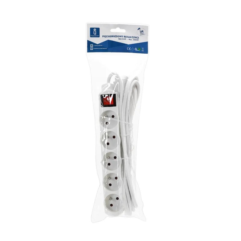 Listwa zasilająca na 5 gniazd typu francuskiego z przełącznikiem 3
