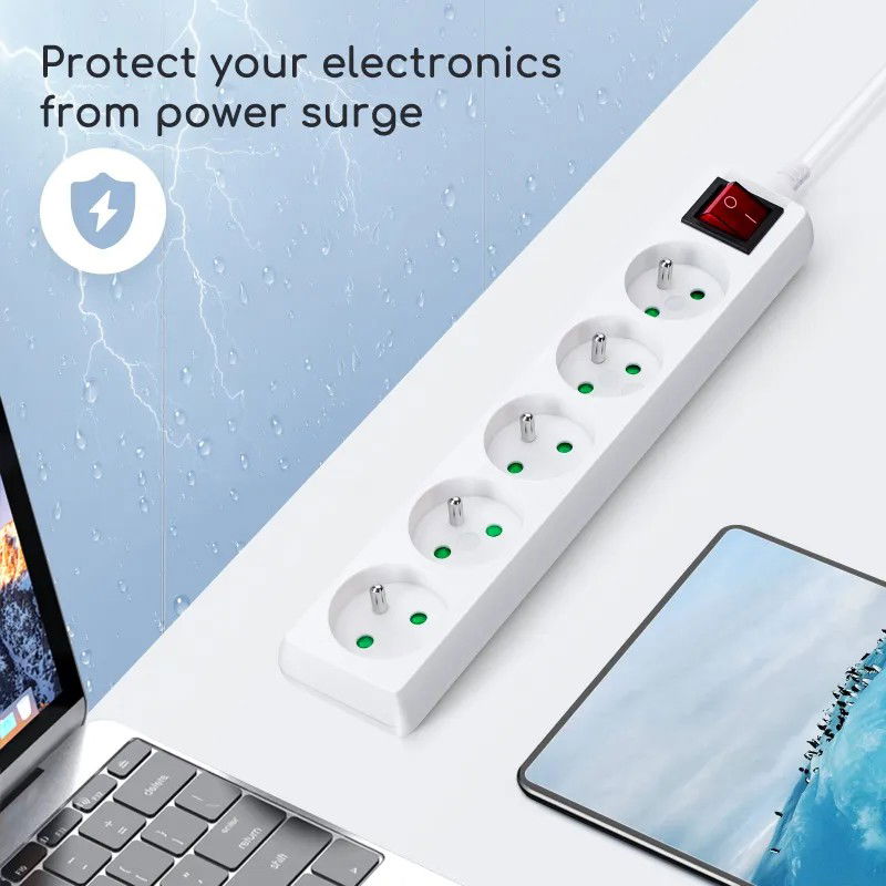 Listwa zasilająca na 5 gniazd typu francuskiego z przełącznikiem