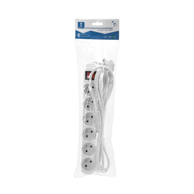 Listwa zasilająca na 6 gniazd typu francuskiego z przełącznikiem 3