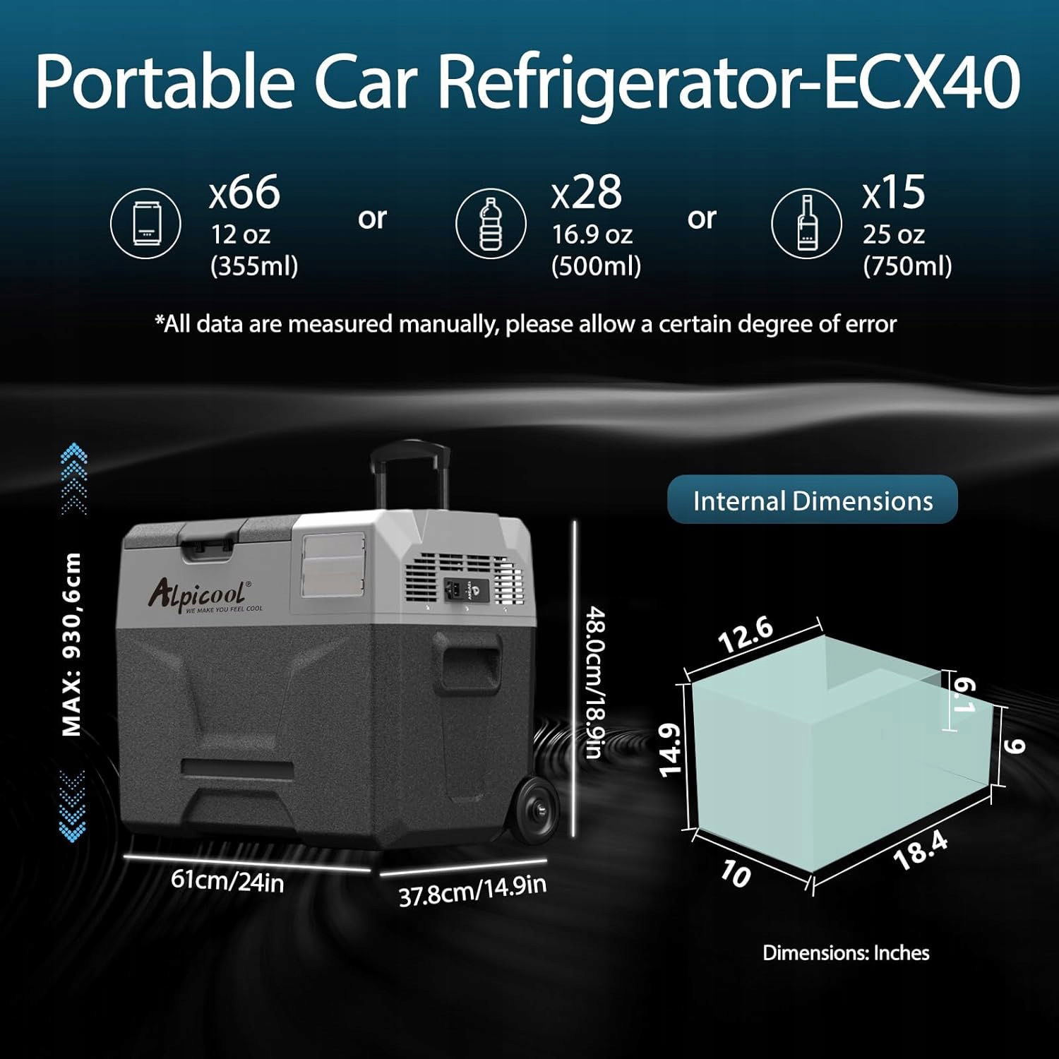 Lodówka Alpicool ECX40 przenośna samochodowa 40L 12/24V DC