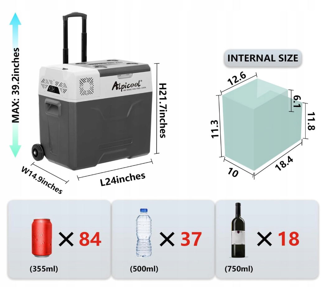 Lodówka Alpicool ECX50 przenośna samochodowa chłodziarka 50L 12/24V DC