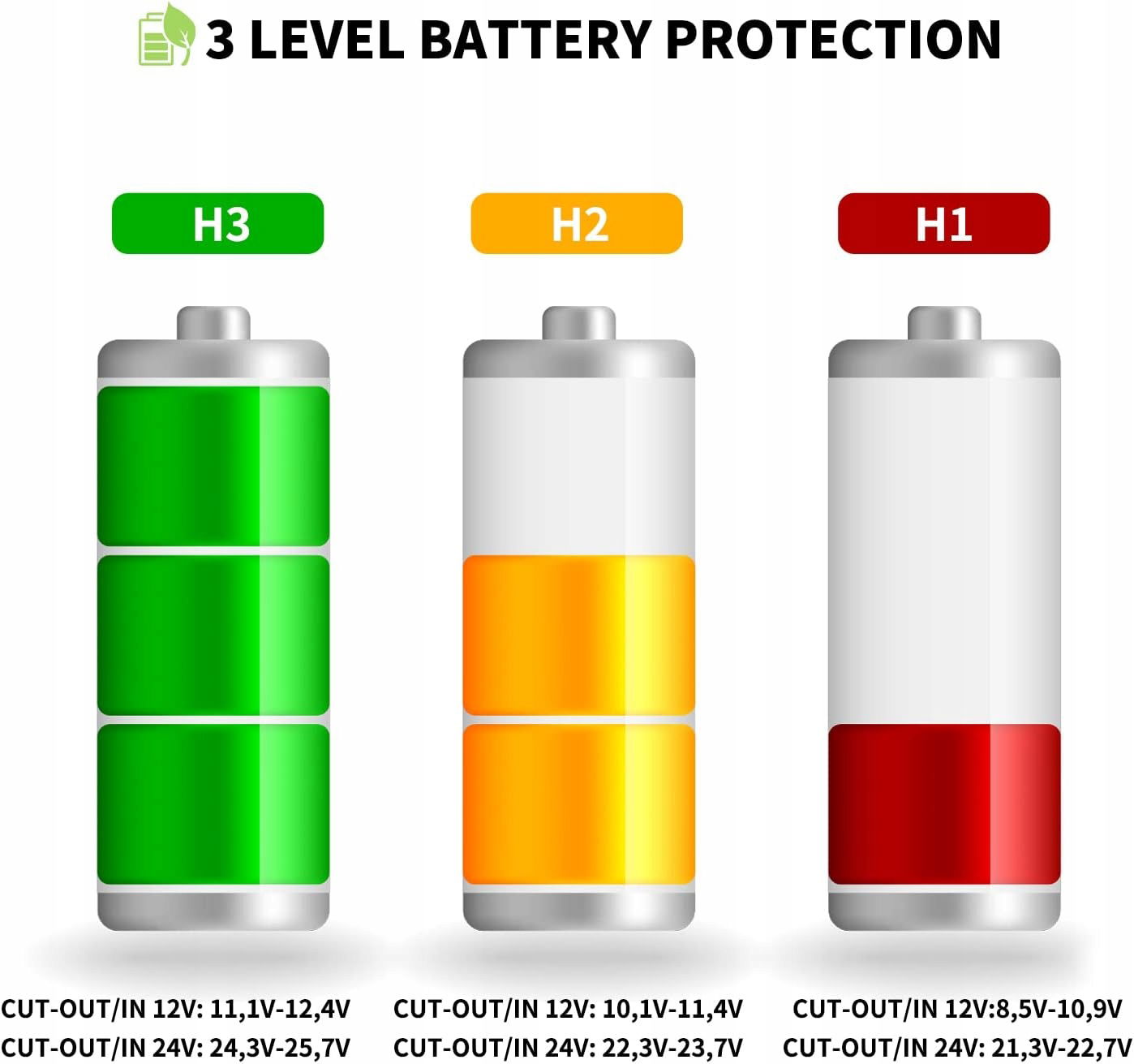 Zabezpiecz swój akumulator z trzema poziomami ochrony: niski, średni i wysoki. Funkcja magazynowania temperatury i tryby MAX oraz ECO zapewniają optymalną efektywność.