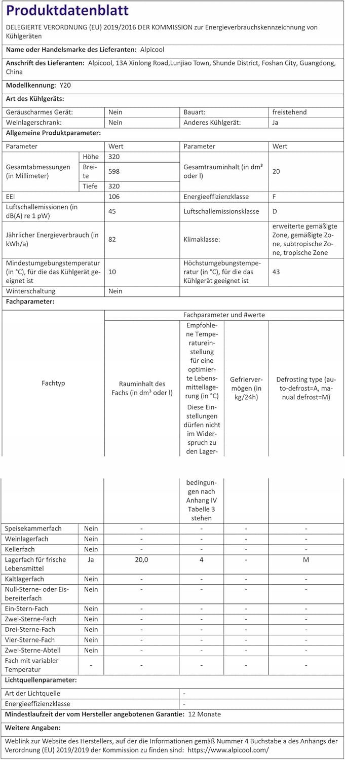 Lodówka Alpicool Y20T 12V przenośna zamrażarka 30 litrów na kemping