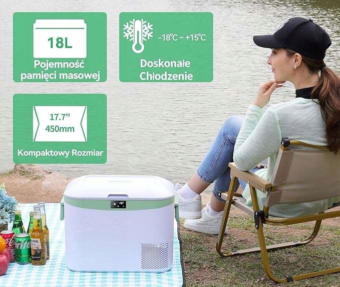 Obsługa dotykowa z wyświetlaczem LED umożliwia precyzyjne ustawienie temperatury. Kompaktowy rozmiar sprawia, że lodówka idealnie nadaje się do bagażnika, a lekka obudowa ABS ułatwia przenoszenie.
