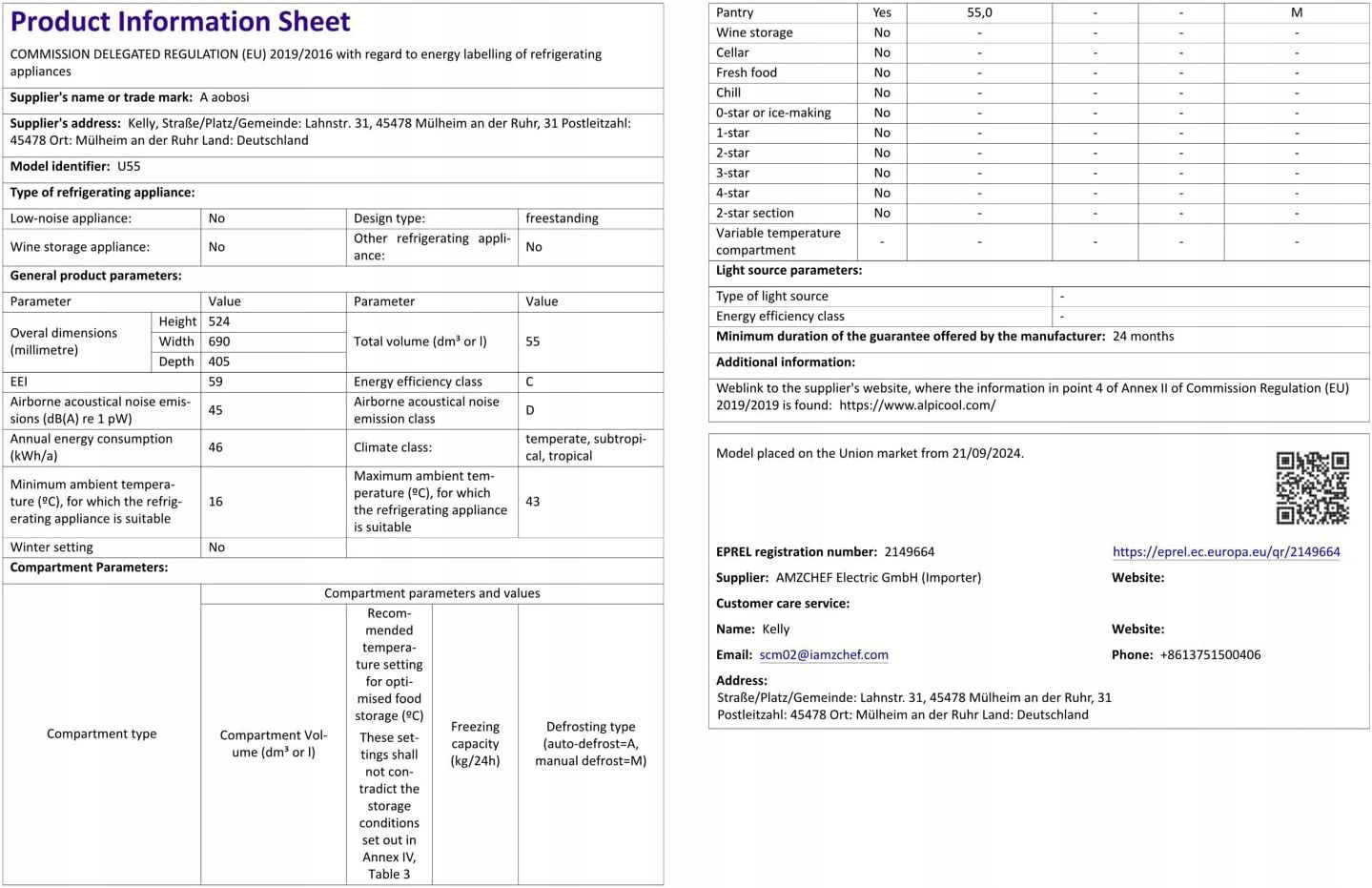 Lodówka samochodowa AAOBOSI 55l z kompresorem i sterowaniem WiFi APP