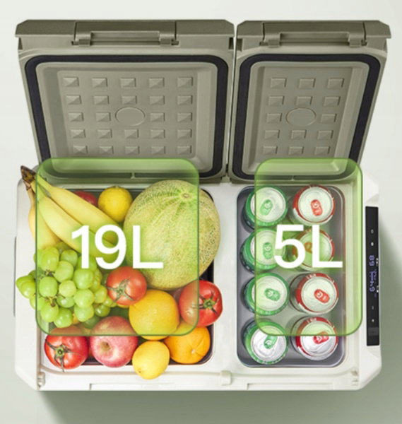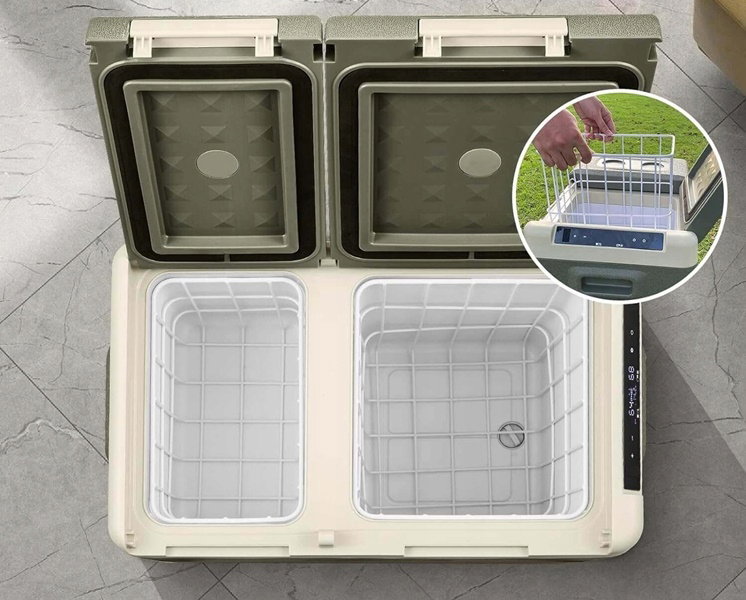 Przenośna lodówka AAABOSI ma dwie strefy przechowywania.