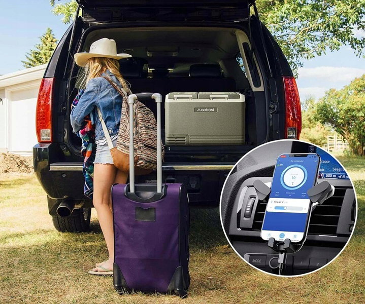Lodówka AAOBOSI 12v jest wyposażona w kontrolę aplikacji, która pozwala zdalnie sterować zamrażarką w samochodzie i regulować temperaturę w dowolnym momencie.