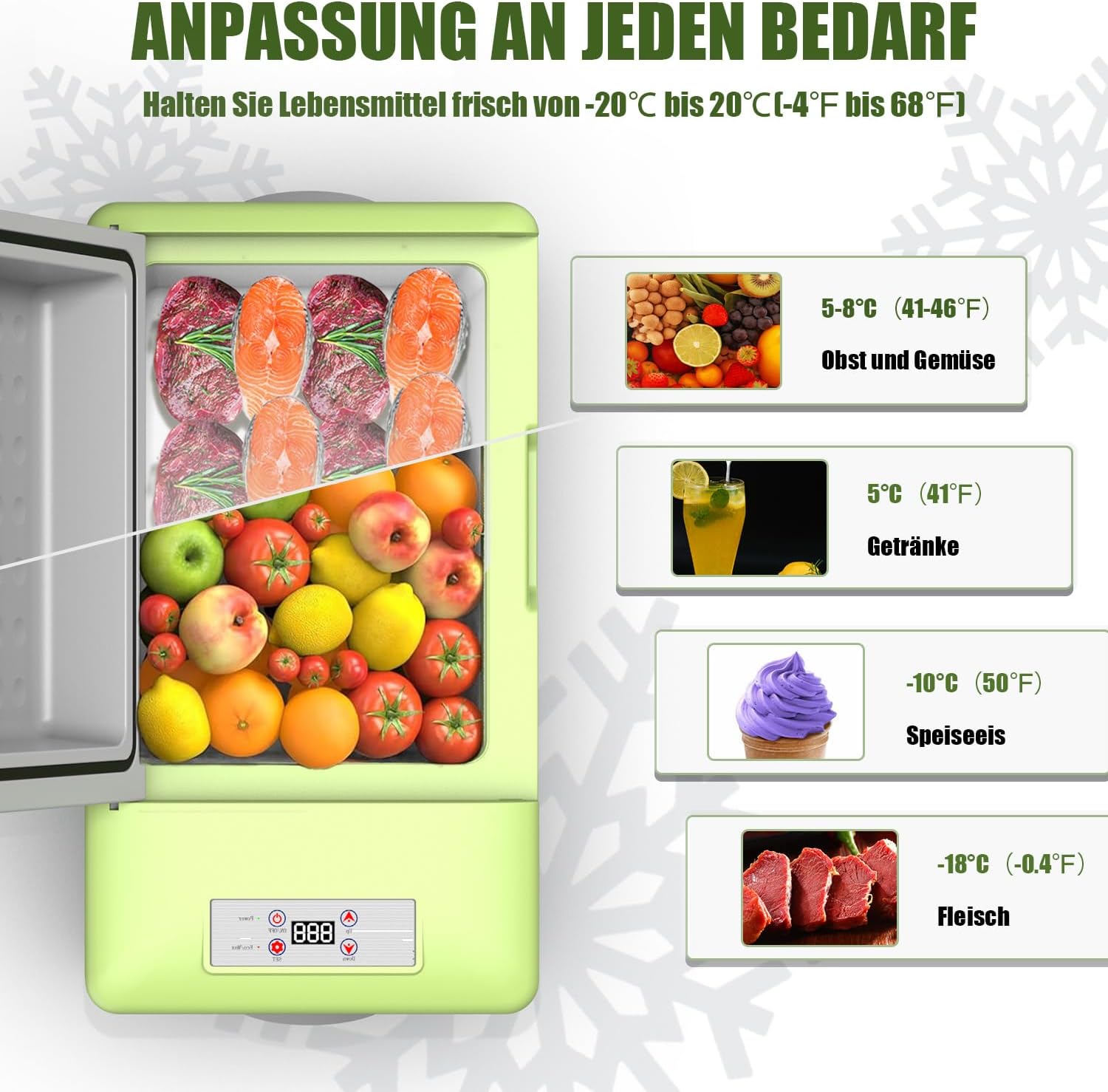Alpicool Y20 to kompaktowa lodówka turystyczna o pojemności 20L, która oferuje głębokie chłodzenie do -20℃ bez potrzeby użycia lodu. Idealna do samochodów, kamperów, ciężarówek, łodzi i biwakowania, zapewniając świeże jedzenie i napoje w każdej podróży.
