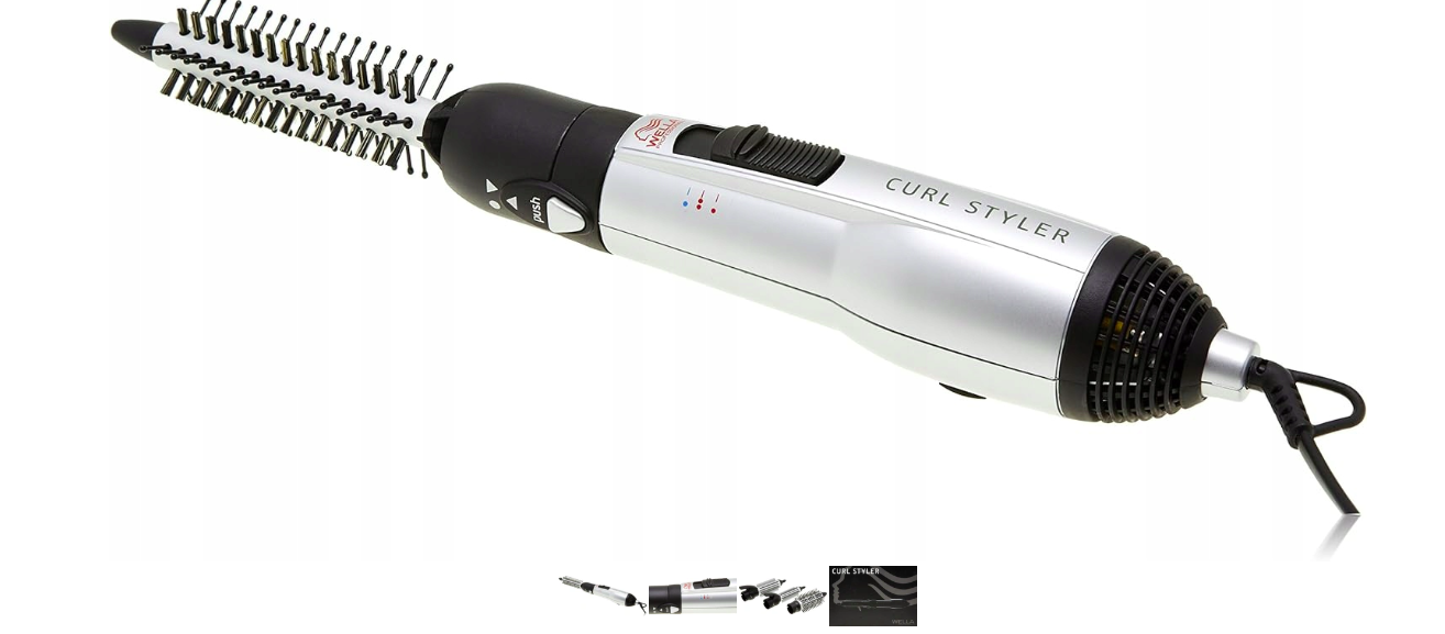 Opis dodatkowy: CURL STYLER został zaprojektowany, aby jednocześnie stylizować i suszyć włosy – zarówno w wilgotnych, jak i suchych włosach. Cztery różne średnice szczotki zapewniają, że za pomocą Curl STYLER można tworzyć małe i duże loki. Moc 600W. Ta profesjonalna szczotka z nawiewem umożliwi Tobie bardzo szybkie i skuteczne suszenie włosów dzięki stałemu napływowi ciepłego powietrza, które krąży od środka na zewnątrz. System szybkiej zmiany końcówek umożliwi Tobie łatwe przejście z jednej szerokości na drugą. Szczotka bardzo szybko wysuszy Twoje włosy i jednocześnie wymodeluje je bez względu na ich długość. Szczotka została wyposażona w elektroniczny system kontrolny, który utrzymuje stałą temperaturę. Urządzenie składa się ze stałej rączki oraz czterech nakładanych szczotek zmiennych: 38mm – do włosów długich, 30mm – do włosów półdługich, 20mm – do włosów półdługich, 12mm – do włosów krótkich. Dwie prędkości ciepłego nawiewu, zimny nawiew