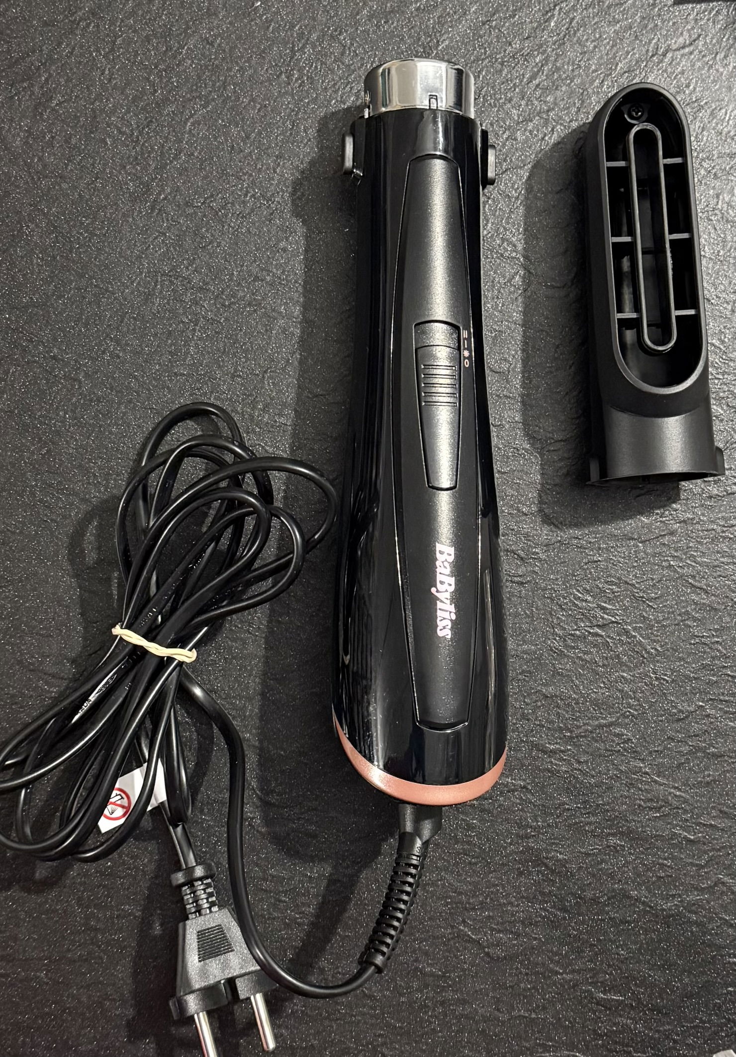 BaByliss Perfect Finish – szczotka z ciepłym powietrzem 1000 W. 3 nasadki do wygładzania, objętości i kształtowania, 2 ustawienia temperatury + poziom zimna, technologia jonowa zapobiegająca puszeniu