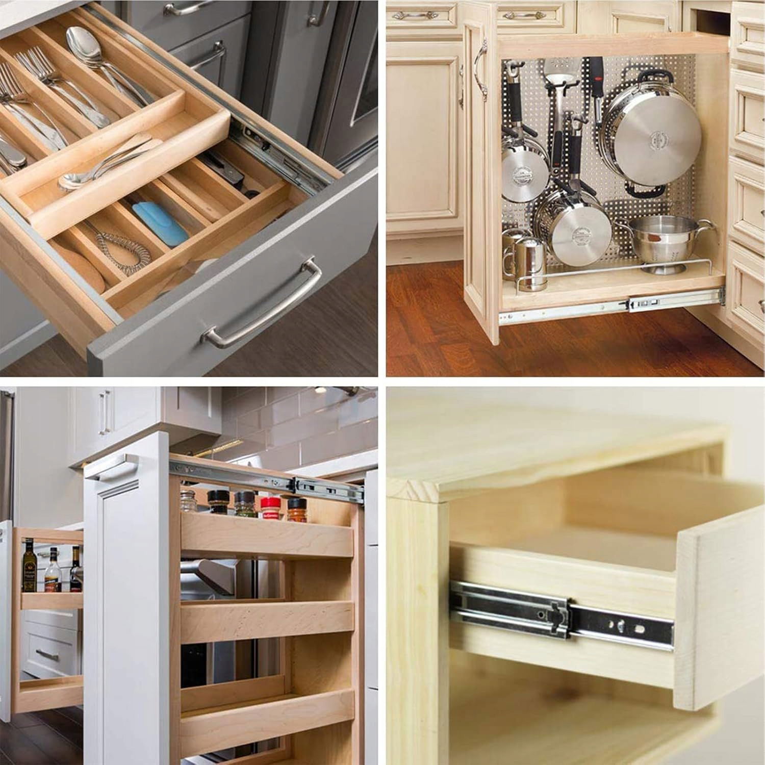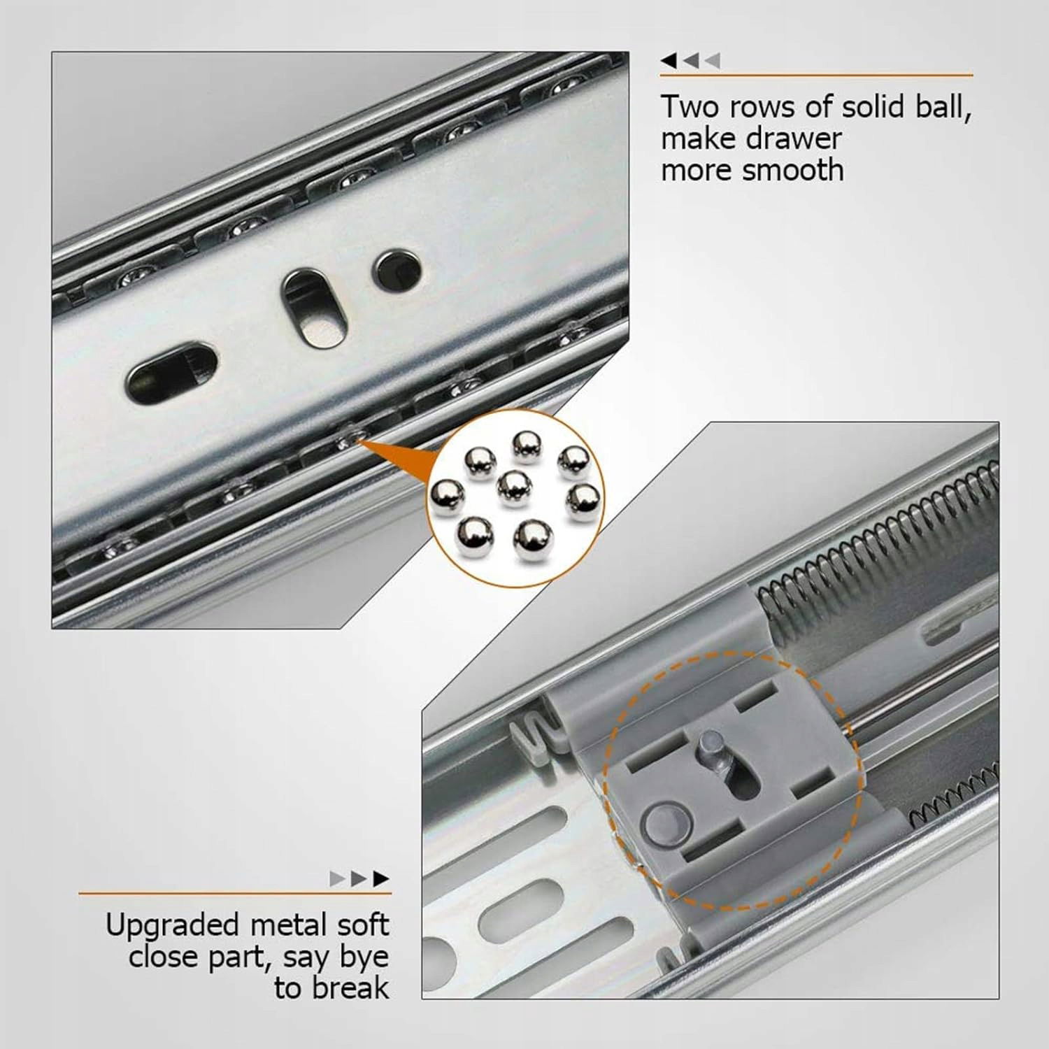 - 【Wygodna i funkcjonalna konstrukcja】Wyposażone w amortyzatory hydrauliczne, zapewniają delikatne zamykanie. Innowacyjna konstrukcja z podwójnymi sprężynami redukuje hałas podczas otwierania i zamykania. Podwójny mechanizm zapobiegający wypadaniu szuflad znacząco minimalizuje ryzyko ich wysuwania się z szafek, ułatwiając ich wyjmowanie i czyszczenie.