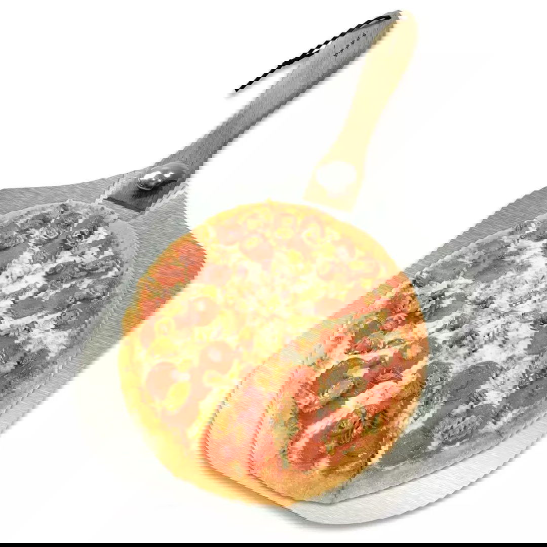 Umożliwi łatwe włożenie i wyjęcie pizzy z piekarnika. Można również na niej serwować pizzę na stół stawiając gorące danie na desce kuchennej
