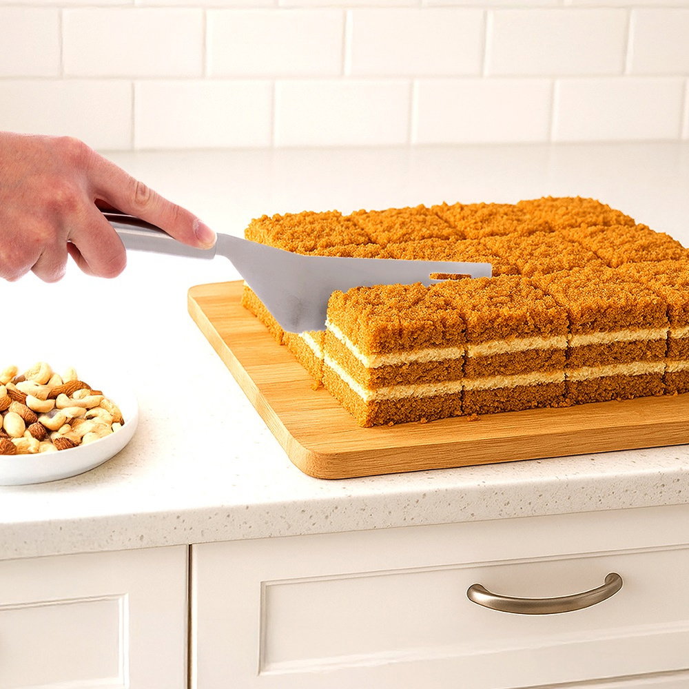 UNIWERSALNE ZASTOSOWANIE - Idealna do krojenia i serwowania ciast, tortów, deserów, a także do porcjowania miękkich i pleśniowych serów lub jako łopatka do obracania.