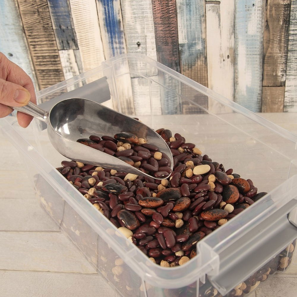UNIWERSALNA - Łopatka znajdą praktyczne zastosowanie w każdym domu, ale także w cukierniach, restauracjach czy barach. Idealna do nabierania sypkich produktów spożywczych np. płatków śniadaniowych, kawy, mąki, cukru, kaszy, kostek lodów, itp. Wykorzystamy ją również do nakładania proszku na pranie, ale także karmy dla zwierząt.