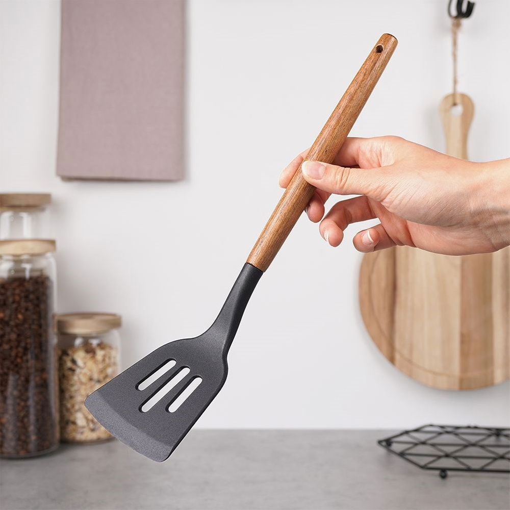 Łopatka Kuchenna Termoplastyczna do Smażenia Czarna Drewniana