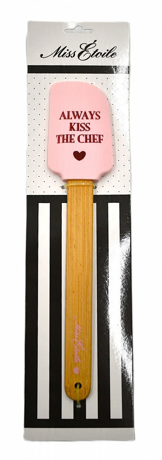 Przedmiotem niniejszej oferty jest szpatułka z wolnego od BPA silikonu z bambusową rączką "Paola". Na szpatułce naniesiono napis "Always Kiss The Chef", co sprawia, że szpatułkę można podarować swojemu szefowi, nawet jeśli nie jest on związany z cukiernictwem. Długość 25 cm, szerokość silikonowej nakładki 5.3 cm.