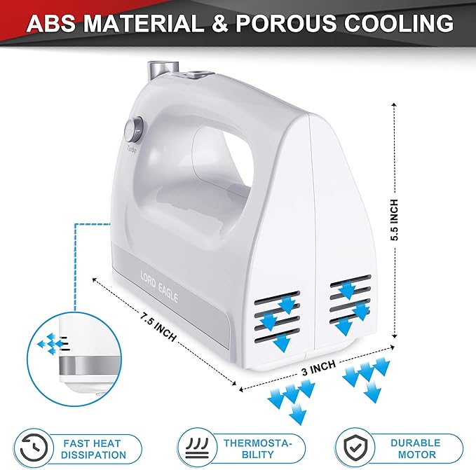Mikser wyposażony jest w nowoczesny, mocny silnik z czystej miedzi. Po przełączeniu na najwyższą prędkość osiągniesz szczytową moc 400 W, co pozwoli Ci szybko i sprawnie przygotować ciasto, jajka, mleko oraz inne składniki.