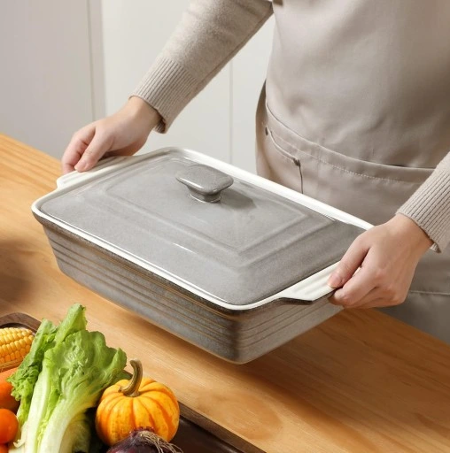 - Ładny kolor i tradycyjny kształt; wewnątrz gładkie i kremowo-żółte, na zewnątrz jest stylowo szare/cieniowane.. Tradycyjny prostokątny kształt, wspaniała glazura, jedyne w swoim rodzaju wzornictwo. Ergonomiczne uchwyty i praktyczna pokrywa, utrzymują ciepło i wilgoć. Dzięki specjalnej, glazurowanej powierzchni nasza forma jest łatwa do czyszczenia.