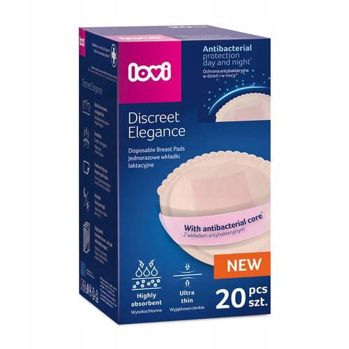 Wkładki laktacyjne LOVI Discreet Elegance zapewniają ochronę antybakteryjną dla mamy i dla jej dziecka. Specjalny wkład antybakteryjny, z dodatkiem nano-srebra eliminuje określone bakterie i chroni skórę piersi przed ich działaniem *, co daje jeszcze większą higienę i bezpieczeństwo podczas karmienia.