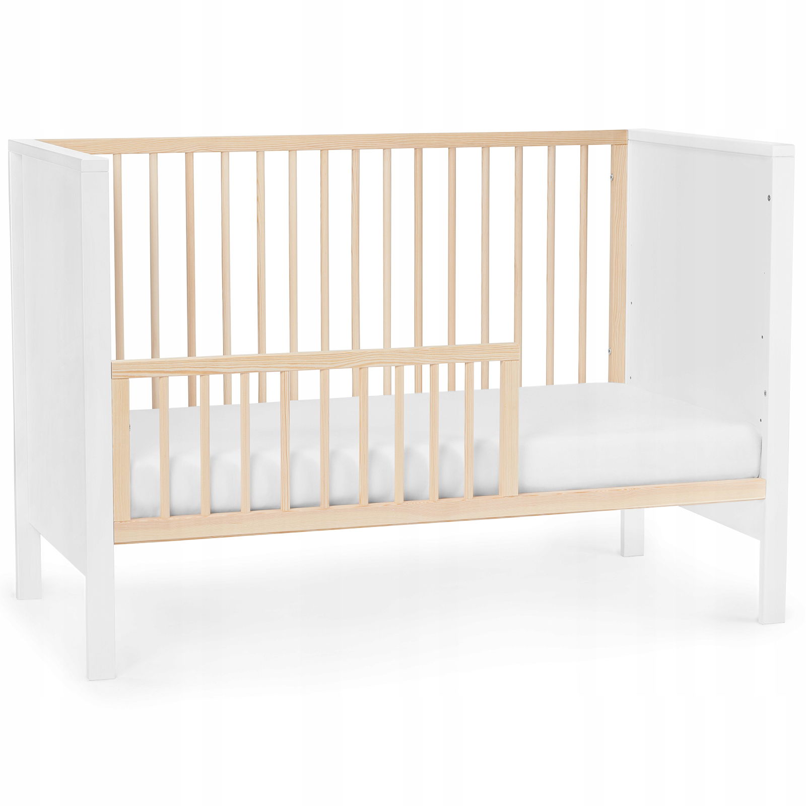 Dołączona do zestawu barierka umożliwia zmianę z klasycznego łóżeczka na w pełni funkcjonalny łóżeczko-tapczanik dla starszaka.