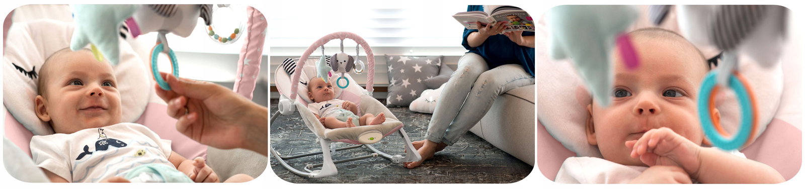 - Uspokojenie i Sen: Leżaczek pomaga w uspokojeniu dziecka, a delikatne wibracje wspierają jego zasypianie. Jest to idealne rozwiązanie, gdy rodzice potrzebują chwili wolnego czasu.