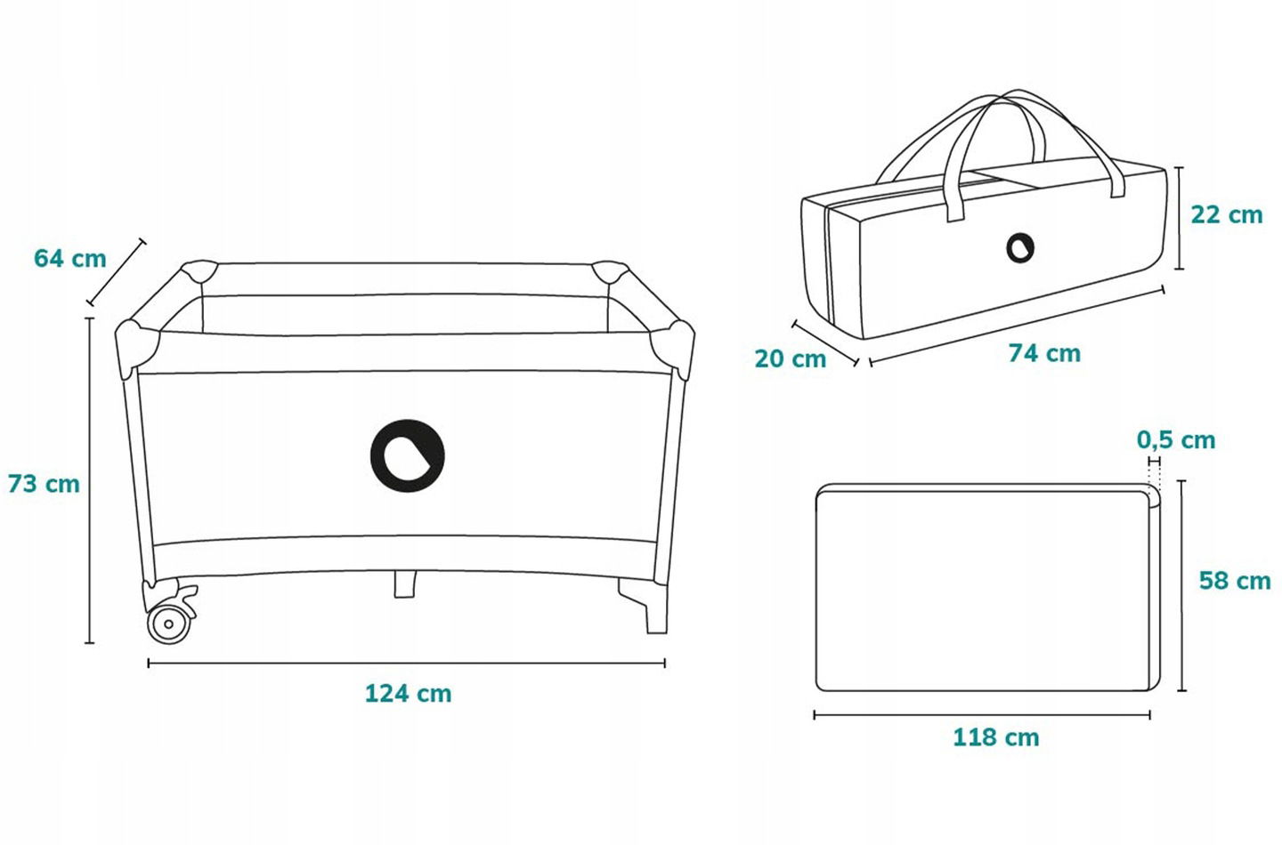 - Torba transportowo-ochronna umożliwia swobodny transport łóżeczka po złożeniu.