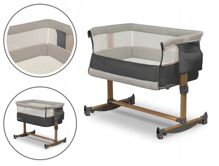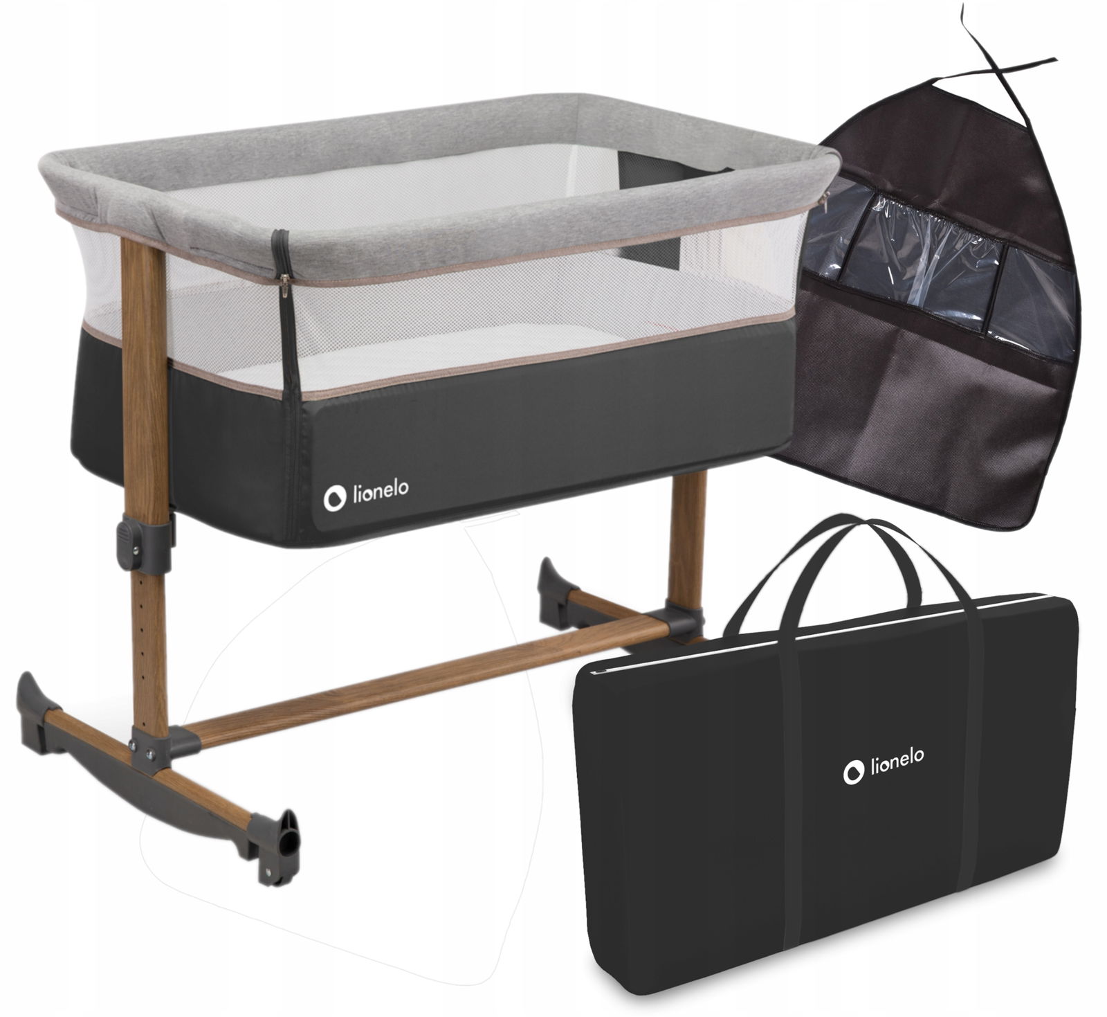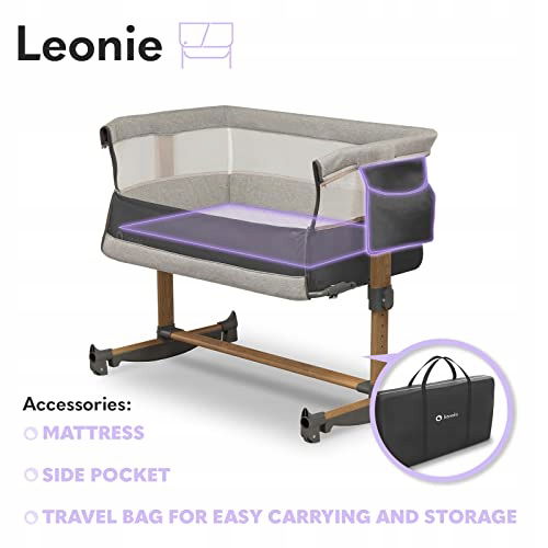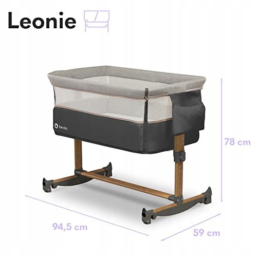 CO-SLEEPING: Wspólne spanie z dziećmi, zapewnia im poczucie bezpieczeństwa i pozwala na zbudowanie silnej więzi. Szczególne ułatwienie dla karmiącej matki. Dzięki 5-stopniowej regulacji wysokości, łóżeczko Leonie można dopasować większości łóżek 3 W 1: Łóżeczko dostawne, wolnostojące i kołyska. Łóżeczko z odpiętą ścianką boczną może służyć jako dostawka, a po podniesieniu ścianki, jako łóżeczko wolnostojące. Dzięki obracanym końcówkom nóg, łóżeczko można zamienić w kołyskę. Zestaw zawiera również materac i torbę ochronną TROSKA O SPOKOJNY SEN DZIECKA: Łóżeczko Leonie zostało wyposażone w niezwykle wygodny materac o wymiarach 50 x 87 cm i grubości aż 3 cm. Konstrukcja oparta na 3 warstwach zapewnia komfort dla maluszka. Pokrowiec można zdjąć i wyprać w pralce BEZPIECZEŃSTWO PRZEDE WSZYSTKIM: Specjalne pasy bezpieczeństwa zapewniają stabilne łączenie Leonie z łóżkiem rodziców. Blokada wysokości uniemożliwia samoczynną zmianę wysokości. Możliwość pochylenia łóżeczka pod kątem ułatwia dziecku zasypianie. Pełna zgodność z europejskim standardem bezpieczeństwa EN 1130 PRZEMYŚLANE ROZWIĄZANIA: Kółka z blokadą umożliwiają swobodne przestawienie łóżeczka. Praktyczna kieszeń boczna zmieści najważniejsze akcesoria dziecka. Torba transportowo-ochronna sprawia, że Leonie doskonale sprawdzi się również w podróży