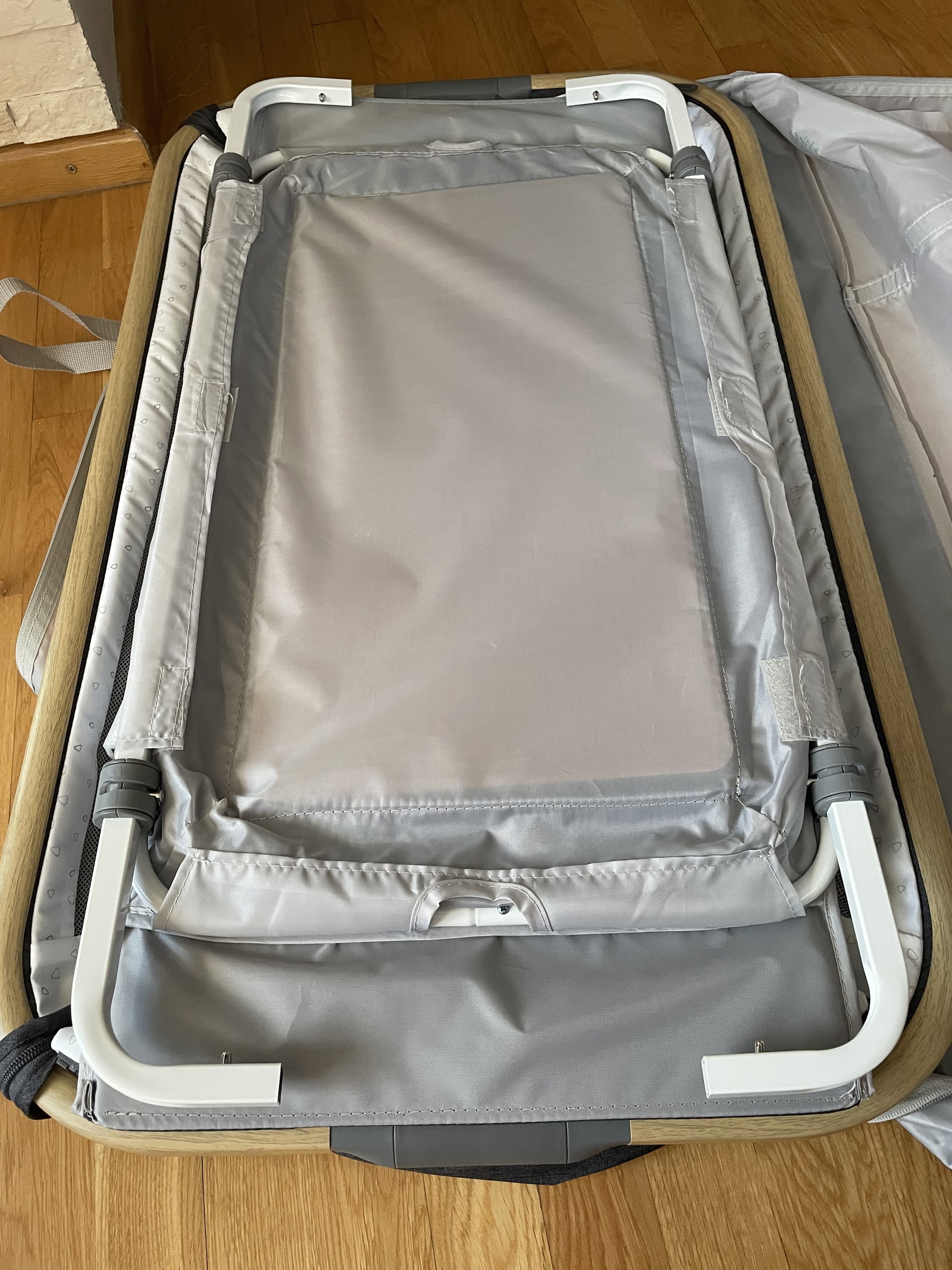 Łóżeczko CoZee® Bedside Crib ma unikalny 30-sekundowy mechanizm otwierania i składania oraz jest wyposażone w torbę podróżną, która pozwala zabrać łóżeczko ze sobą na wycieczkę. Tkaniny podszewkowe gondoli można łatwo zdjąć i wyprać, co pozwala zachować świeżość i czystość Cozee.